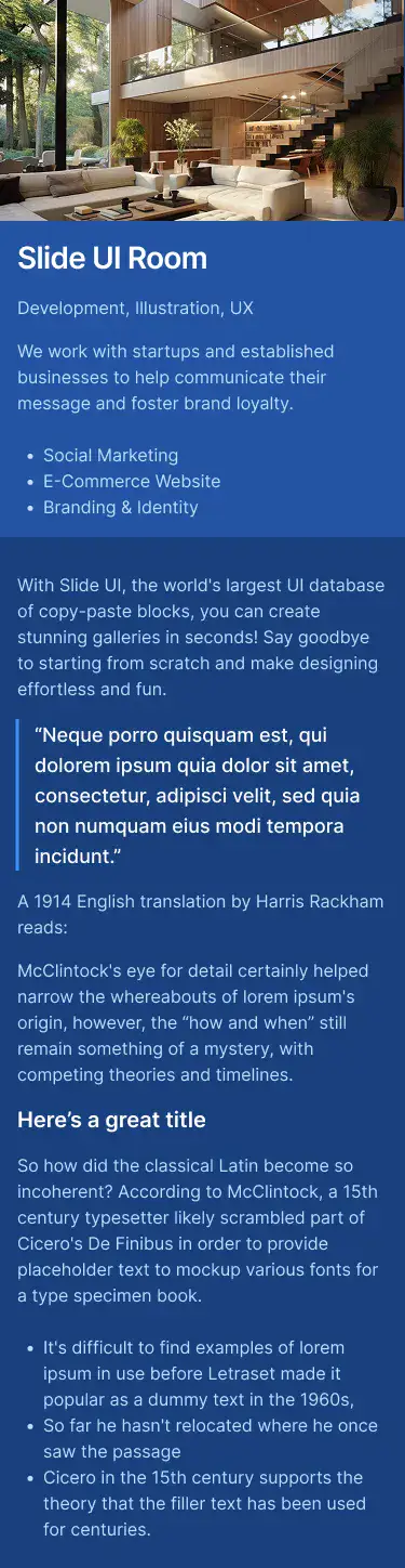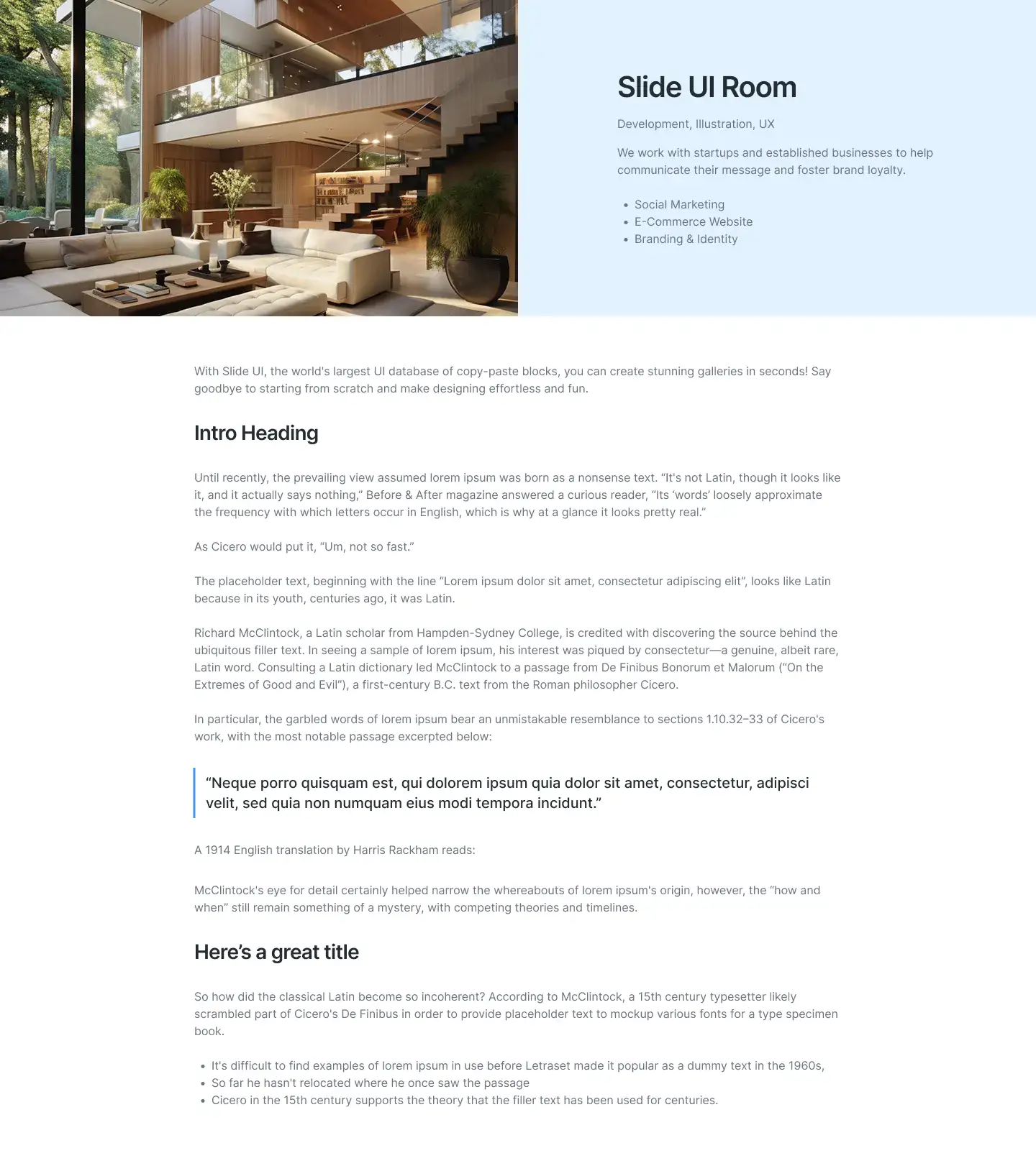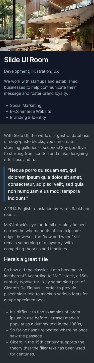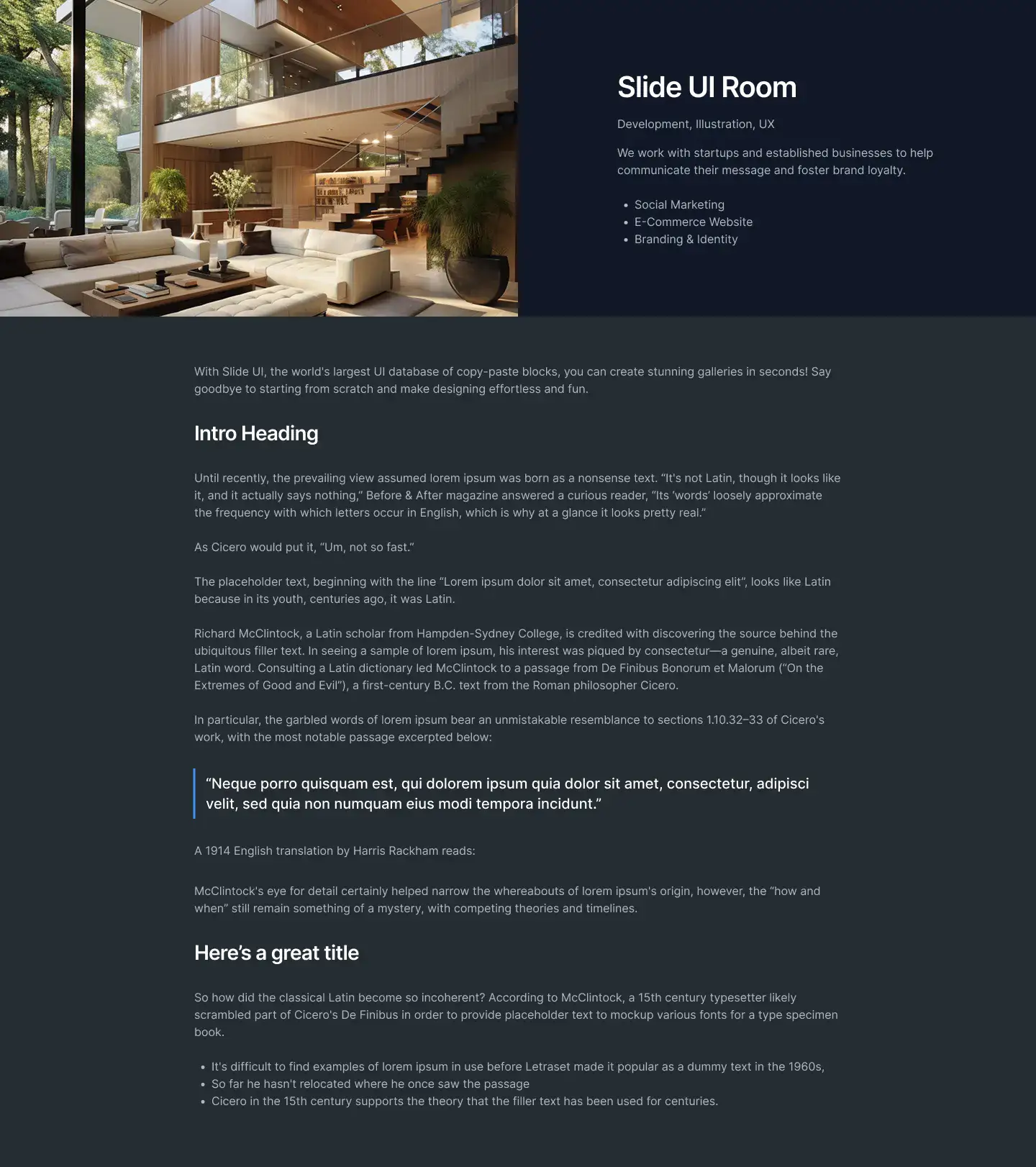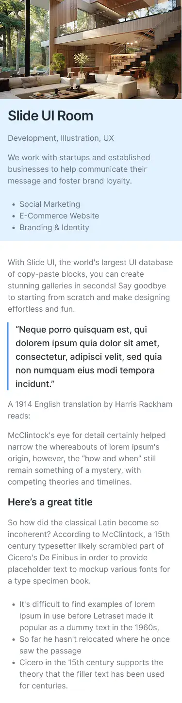 Lightweight sections for storytelling, intros, or visual breaks. Ideal for portfolios, agencies, and SaaS.