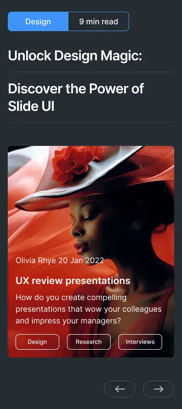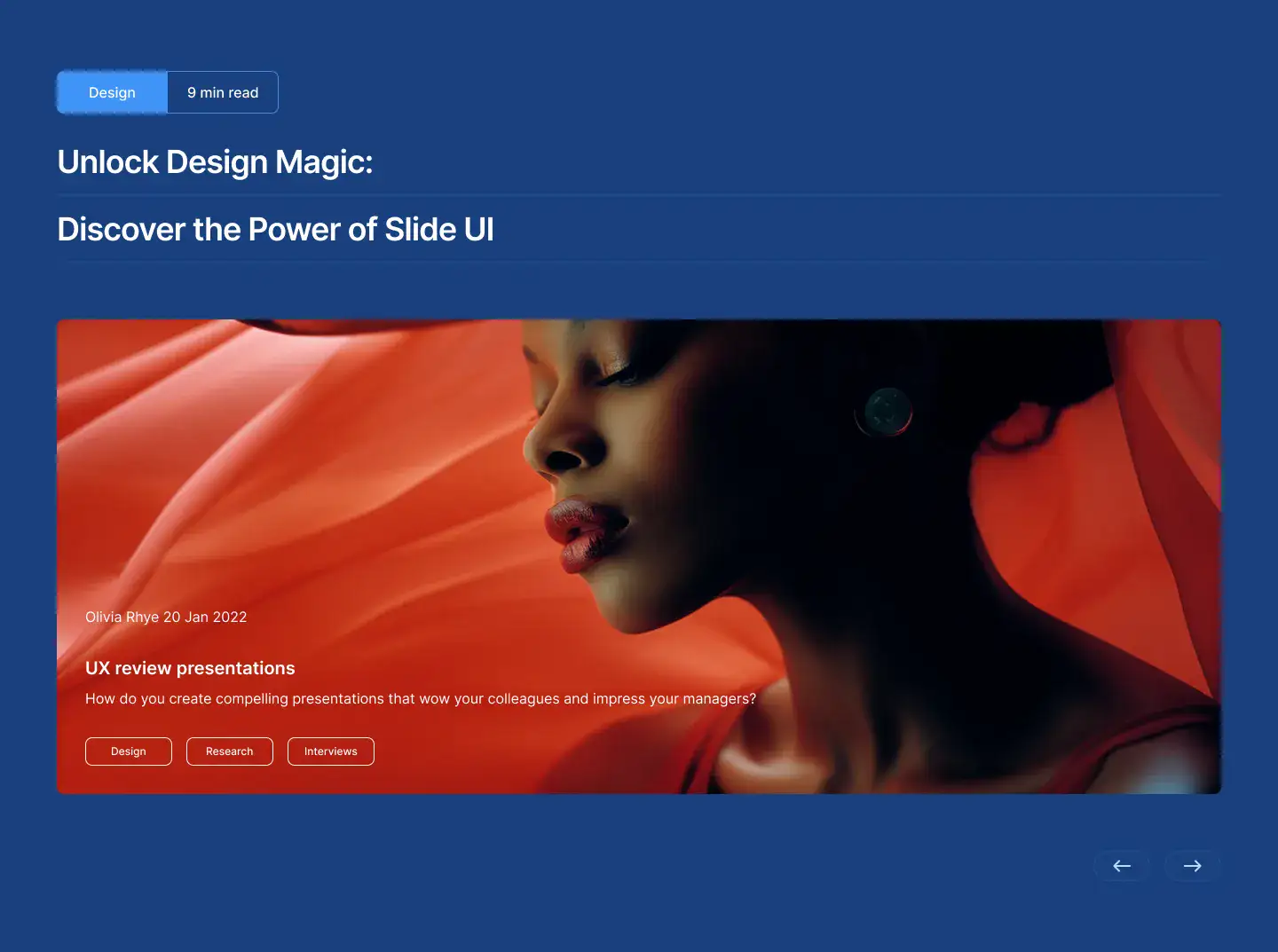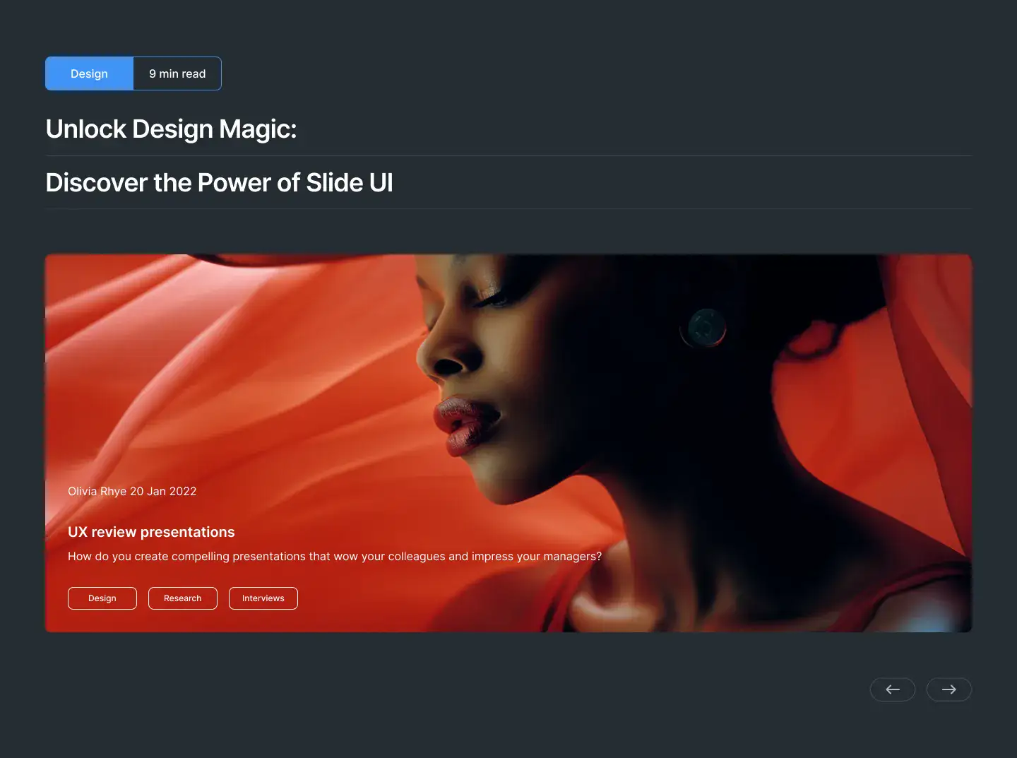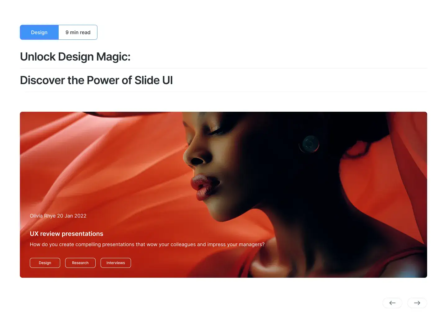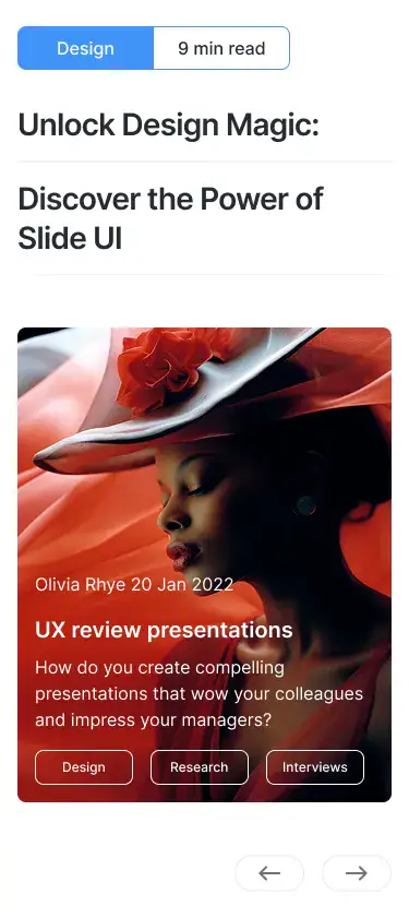 Display posts with preview cards, titles, and tags. Perfect for content hubs or design resource libraries.