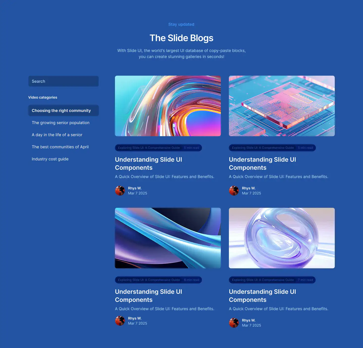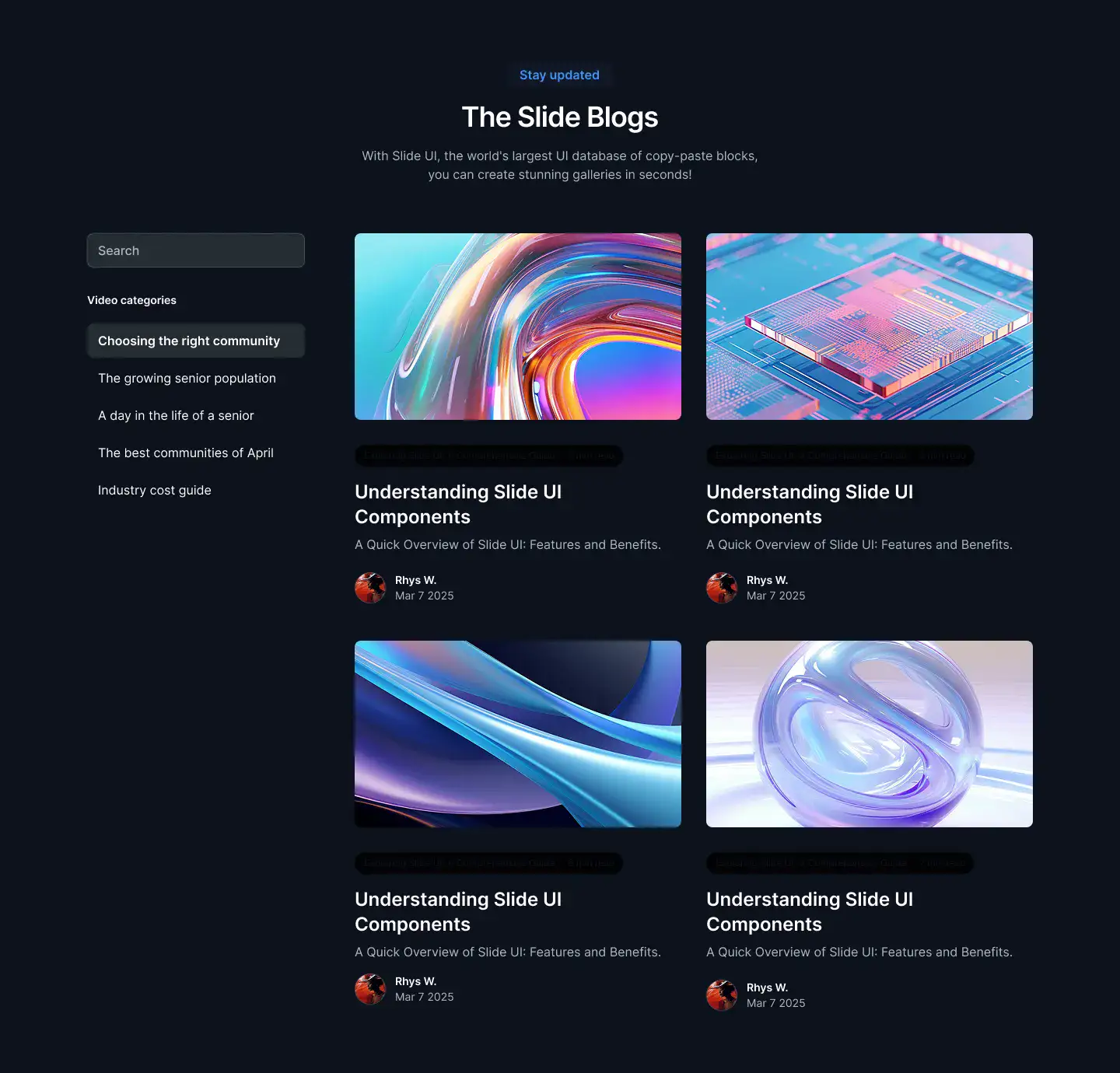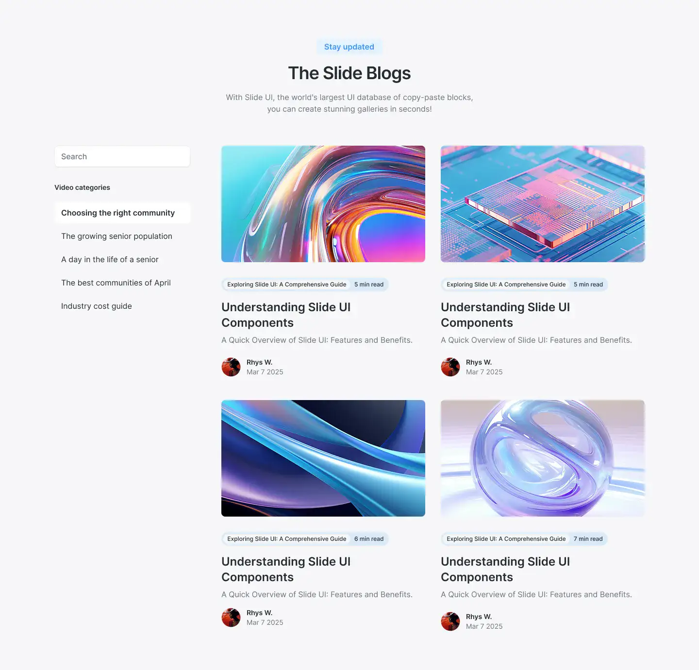 Organise your blog or knowledge base visually with clean, responsive category cards or grids.