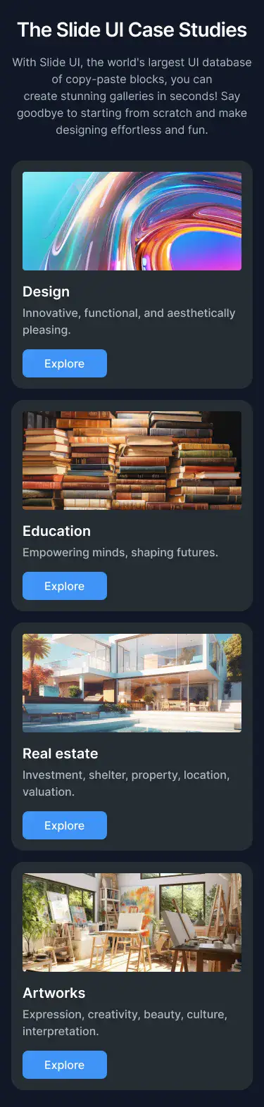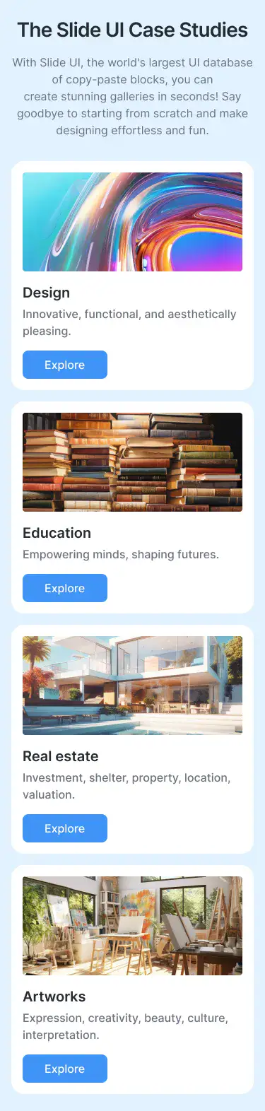 Organise your blog or knowledge base visually with clean, responsive category cards or grids.
