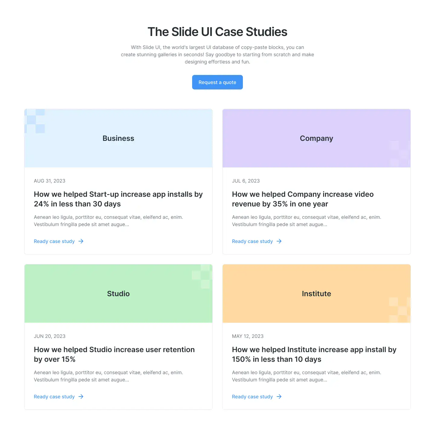 Organise your blog or knowledge base visually with clean, responsive category cards or grids.