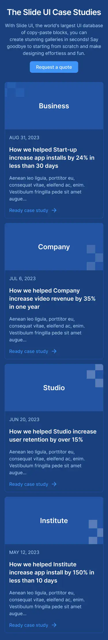 Case Studies Layout for Figma — clean, themeable and responsive across Desktop, Tablet and Mobile. Includes Light, Dark and Accent modes for fast customisation. Ideal for Education, Fitness, Government.