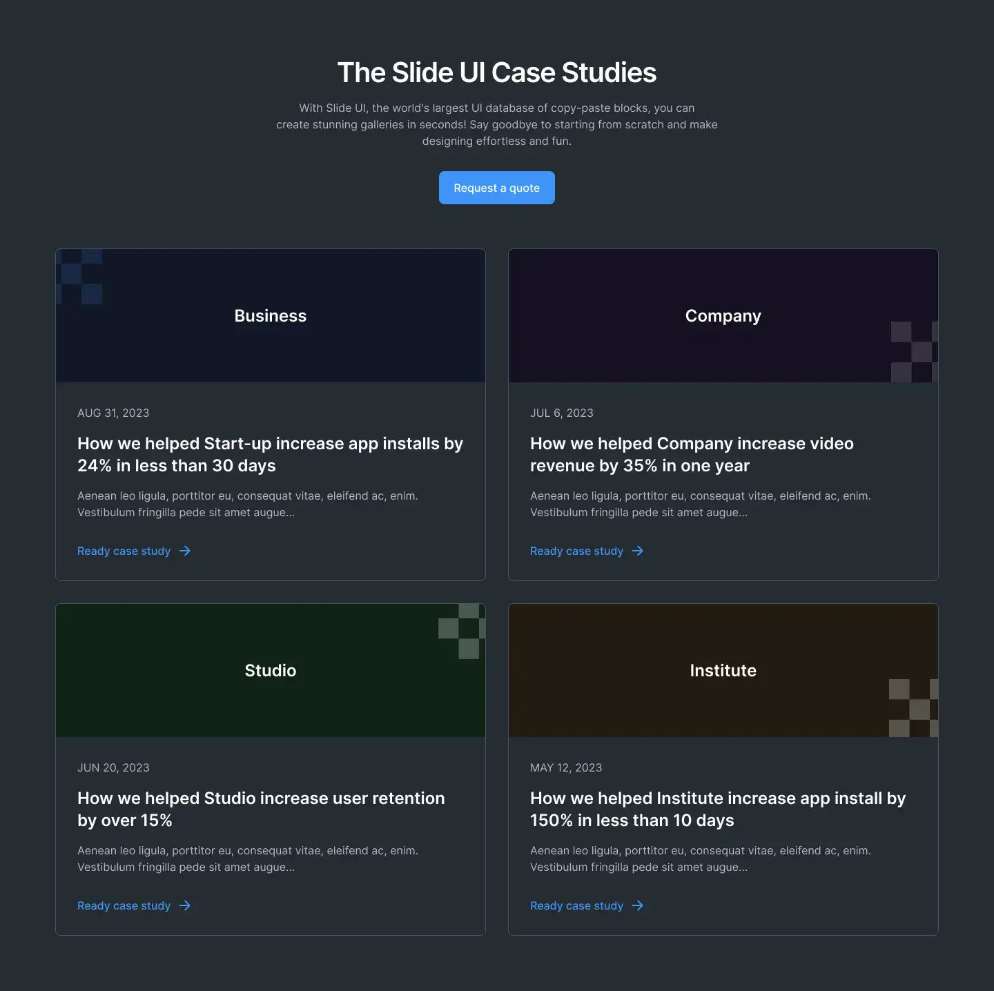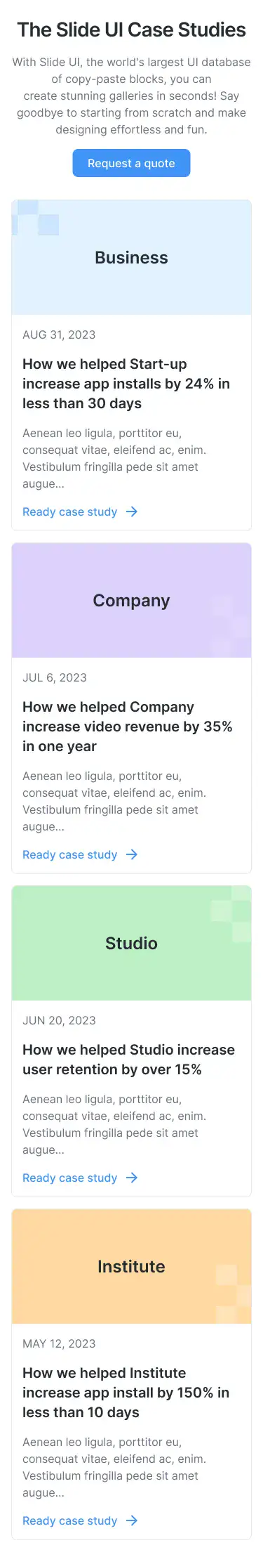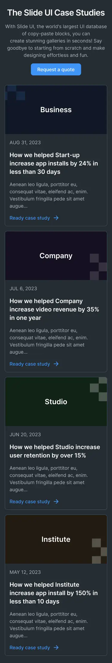 Display posts with preview cards, titles, and tags. Perfect for content hubs or design resource libraries.
