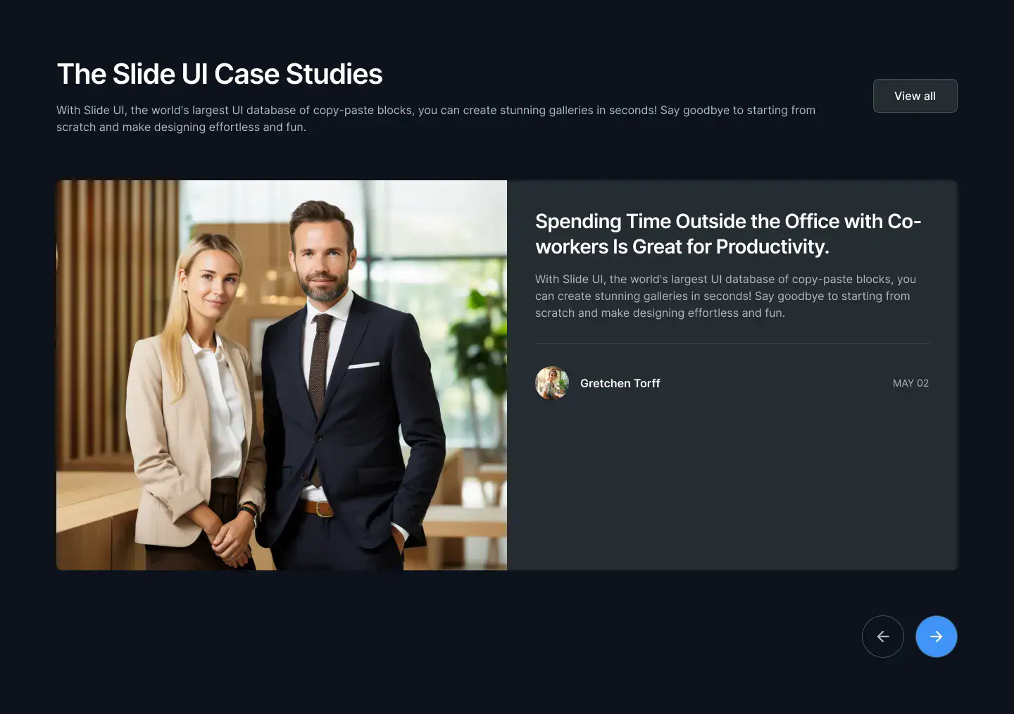 View Hero blocksShowcase processes, features, or onboarding in a clean 3–4 step layout. These are perfect for explaining complex ideas simply.