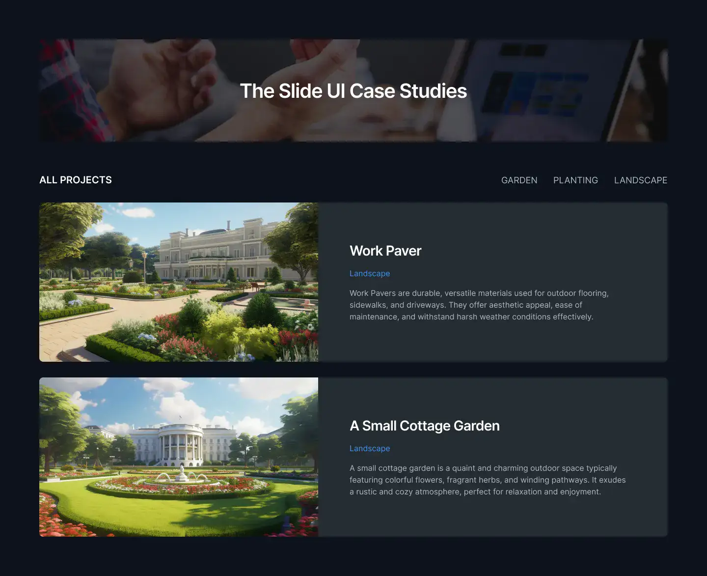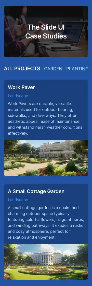 Show project results and stories in a professional way. Includes visual storytelling, stats, and client quotes.