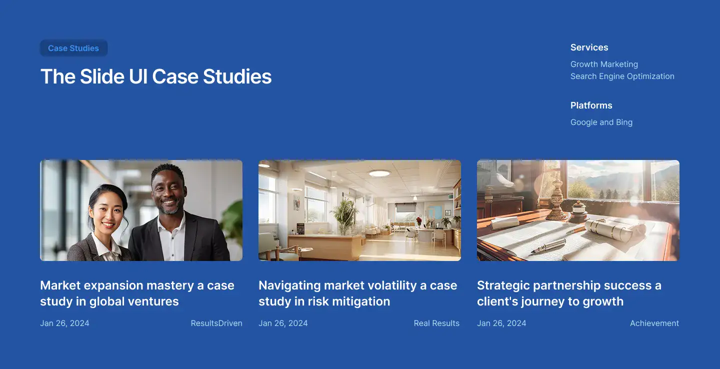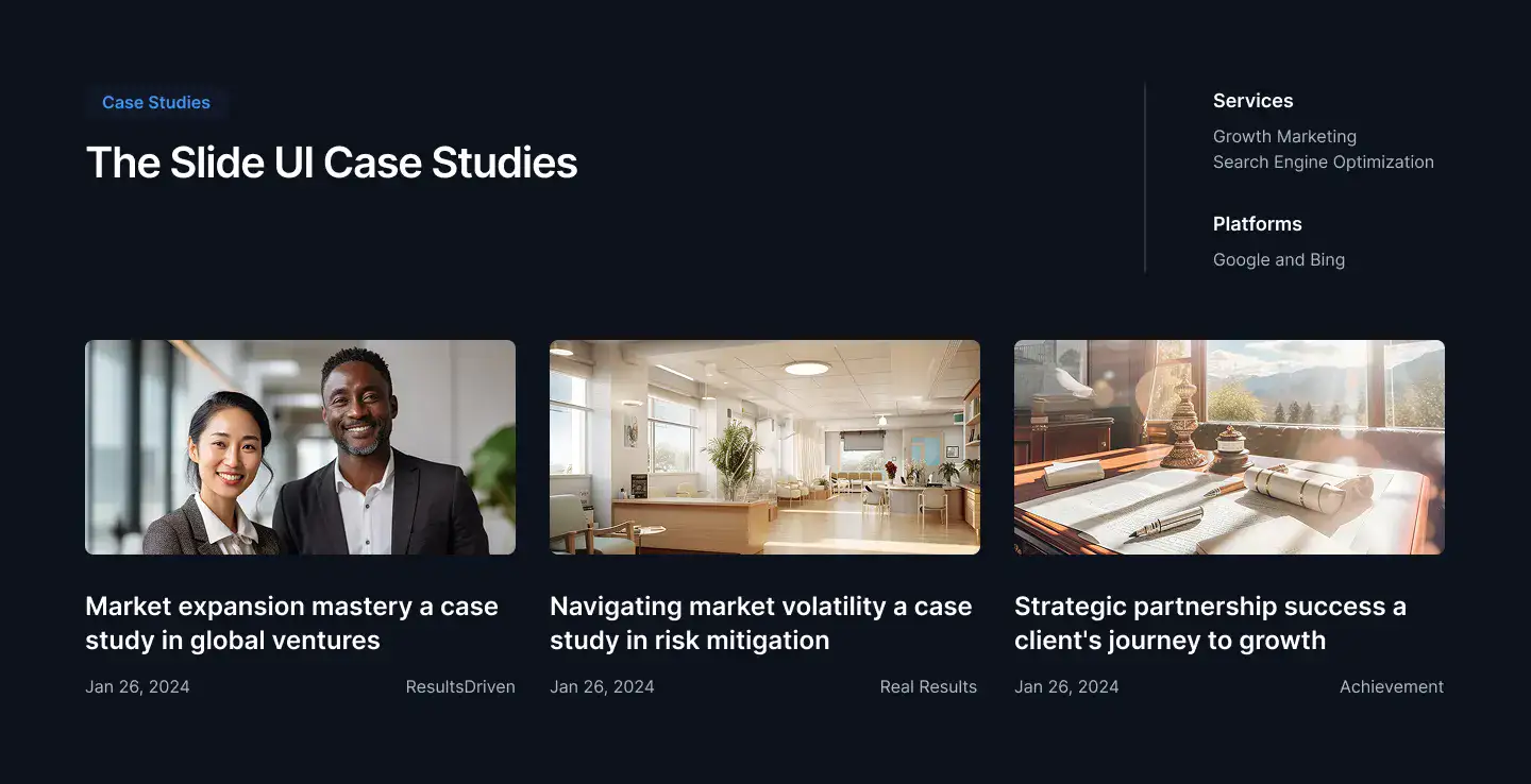 Case Studies Layout for Figma — modern, themeable and responsive across Desktop, Tablet and Mobile. Includes Light, Dark and Accent modes for fast customisation. Ideal for Automotive, Events, Government.
