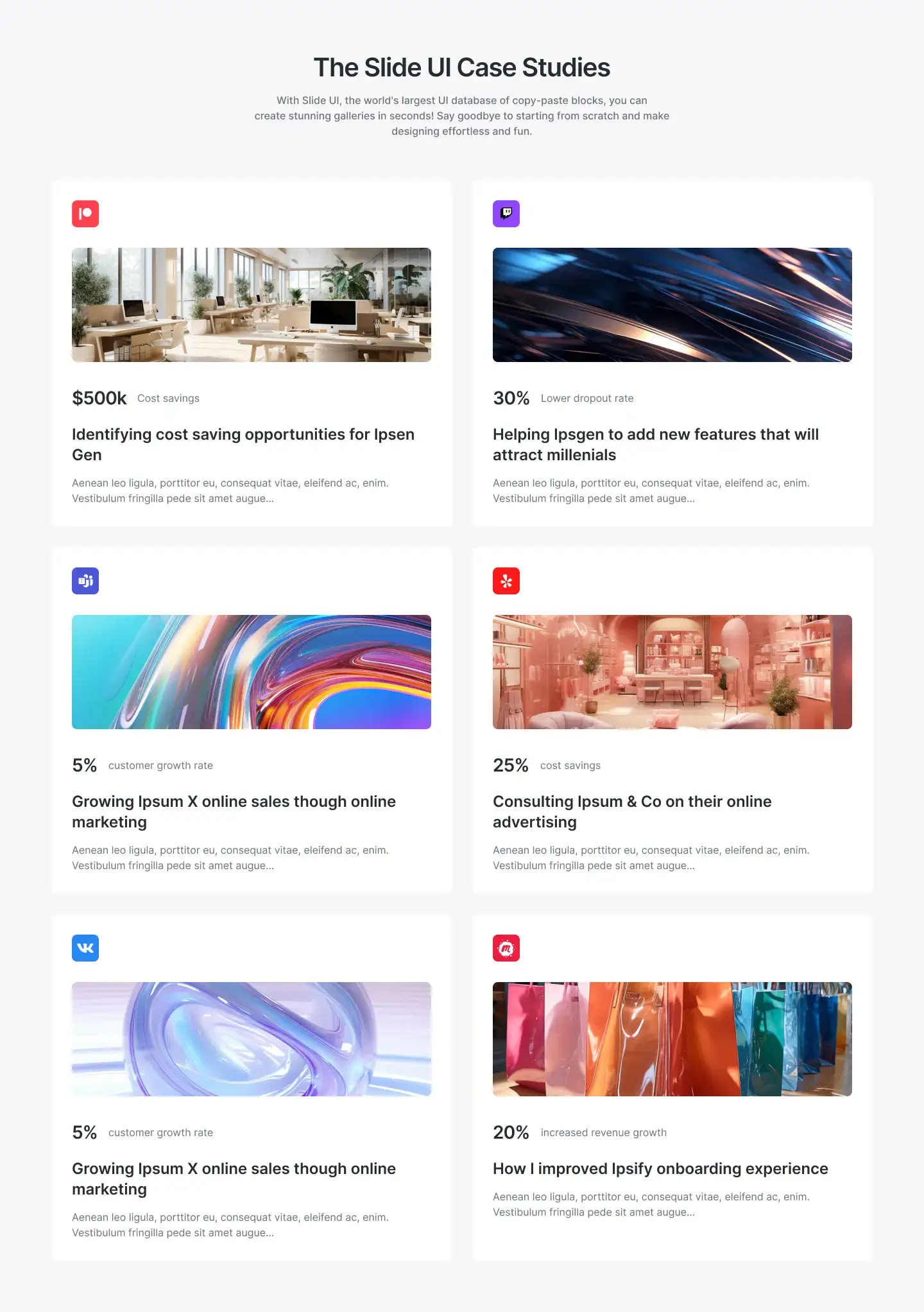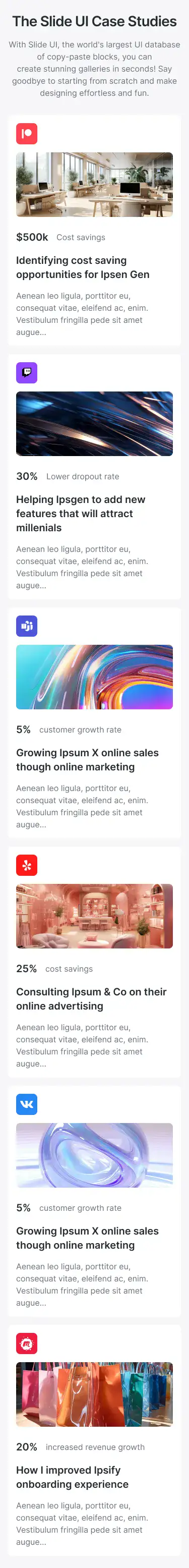 Display posts with preview cards, titles, and tags. Perfect for content hubs or design resource libraries.