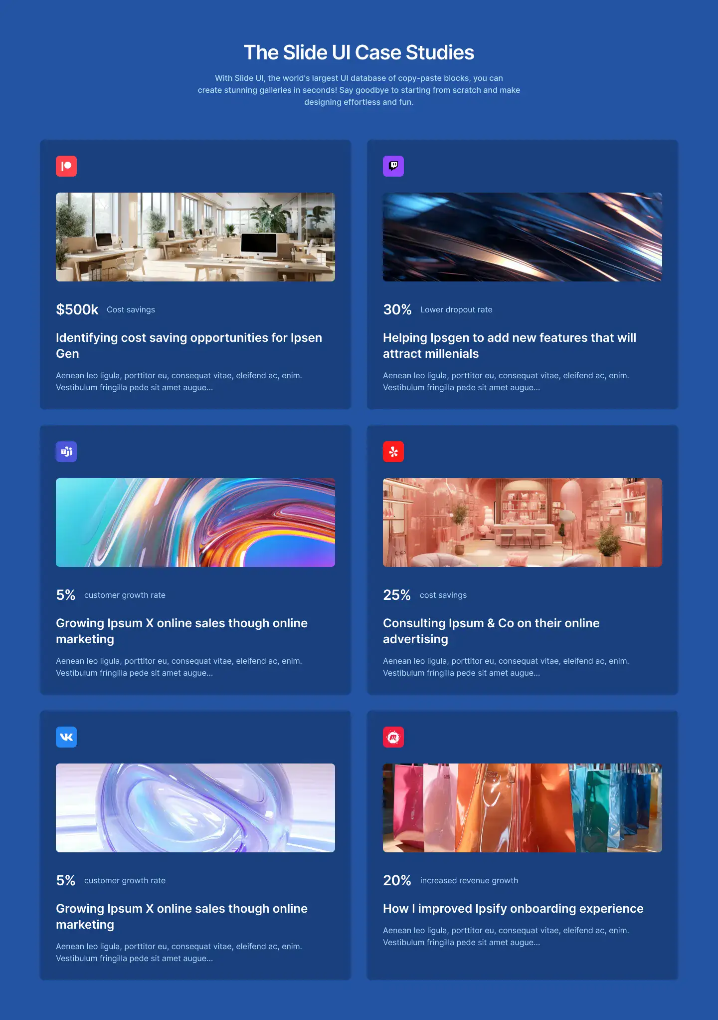High-trust testimonial sections with avatars, logos, quotes, or carousels. Designed to increase credibility and conversions.