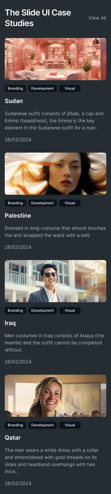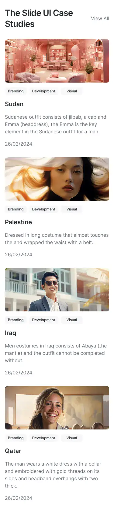 Display posts with preview cards, titles, and tags. Perfect for content hubs or design resource libraries.