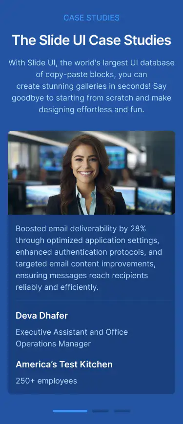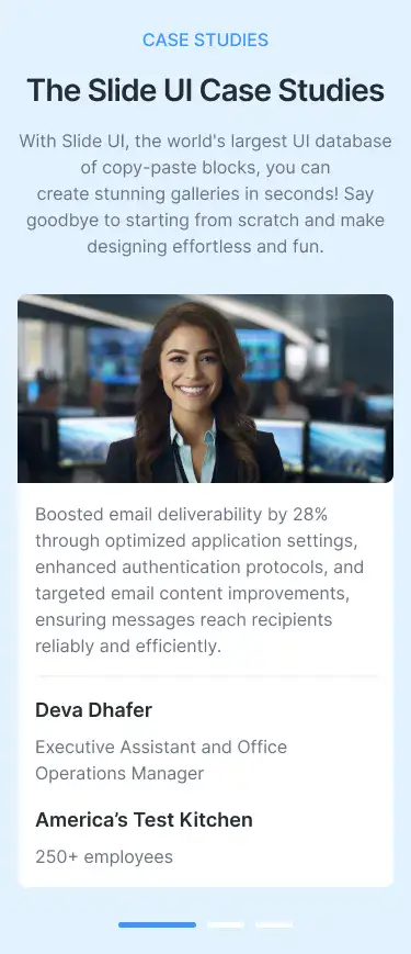 View Hero blocksShowcase processes, features, or onboarding in a clean 3–4 step layout. These are perfect for explaining complex ideas simply.