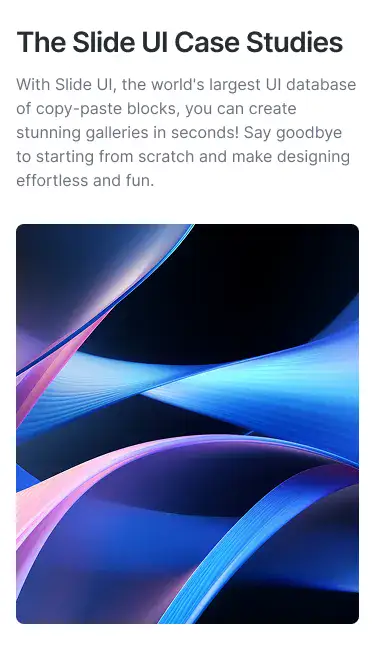 Lightweight sections for storytelling, intros, or visual breaks. Ideal for portfolios, agencies, and SaaS.