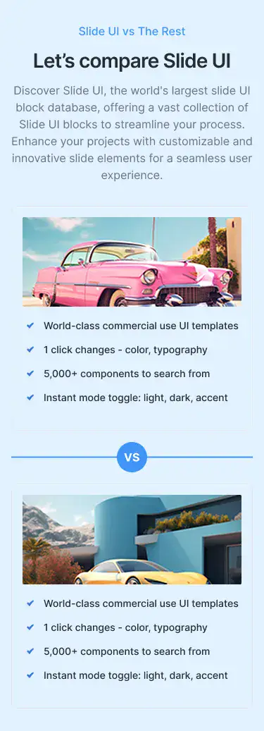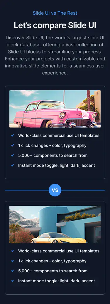 Note:If you prefer SaaS, you can also check out our sister platform app.slideui.com, which offers yearly plans. But if you’re an avid Figma user, the Builder is a must-have — while SaaS can look shiny, nothing beats the speed and control of owning the files directly.