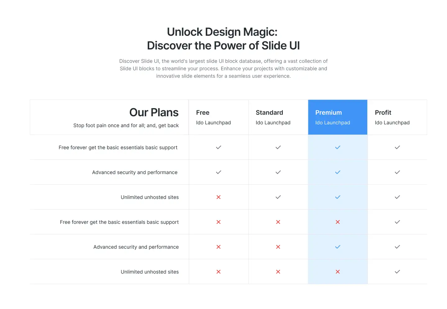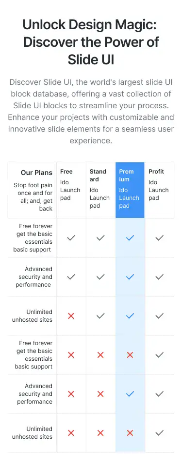 Break down feature differences clearly using side-by-side or table-style layouts. Great for upsell pages.