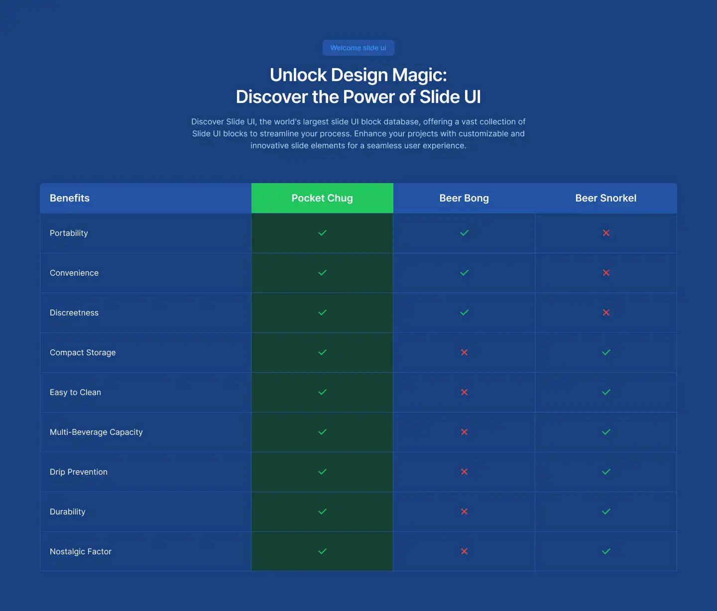 Grid or column-based layouts to highlight your best product features — fast, skimmable, and easy to reuse.