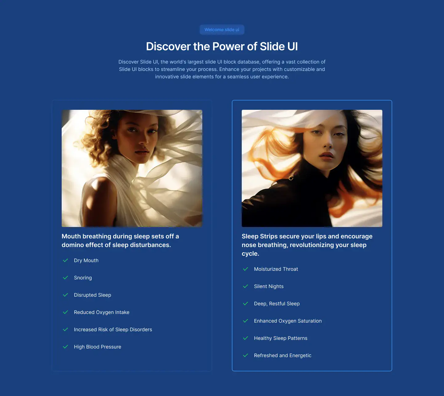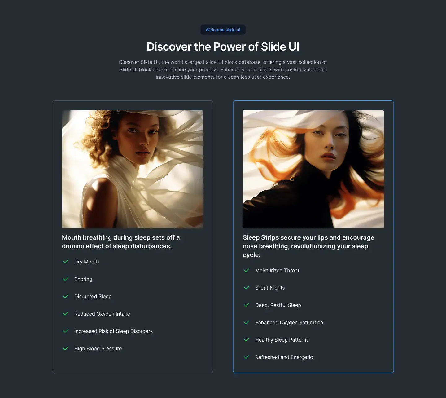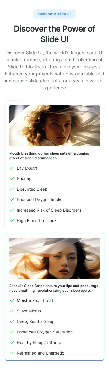 Grid or column-based layouts to highlight your best product features — fast, skimmable, and easy to reuse.