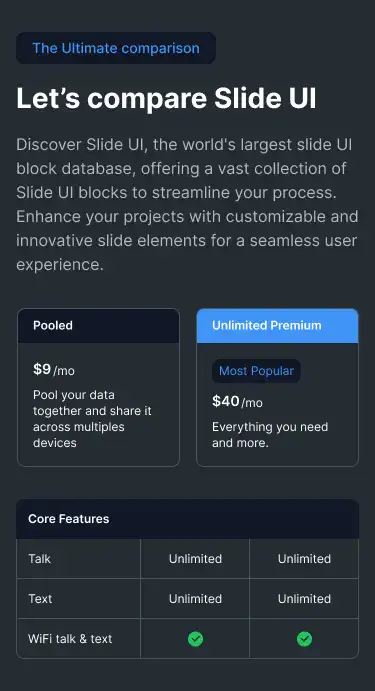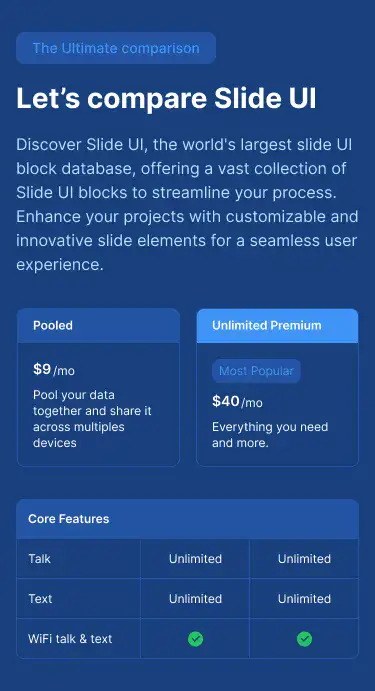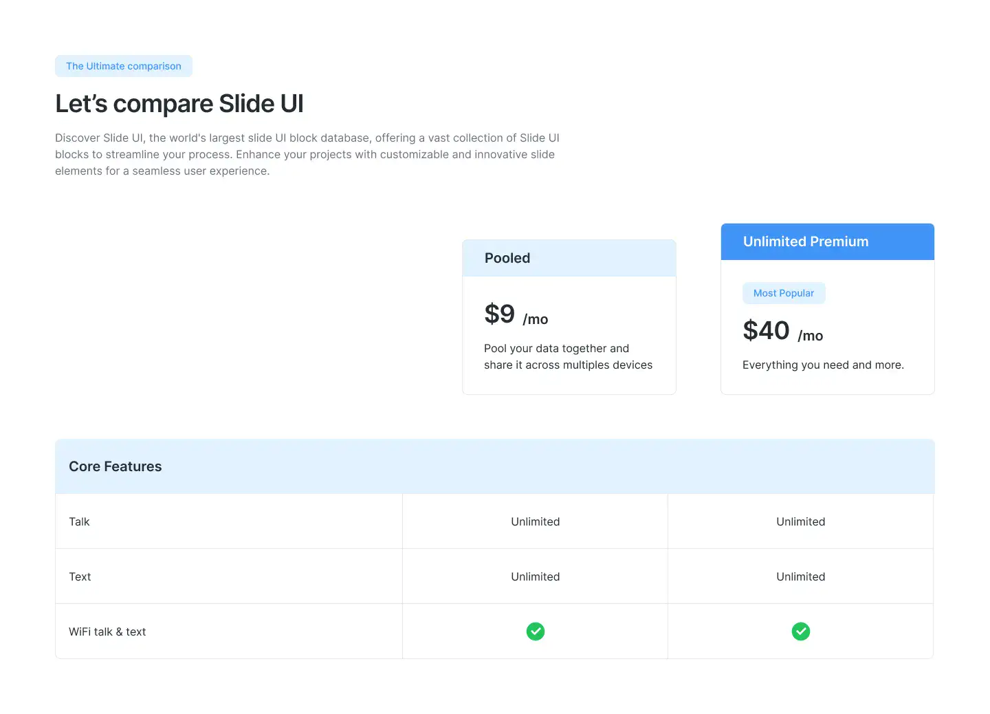 Break down feature differences clearly using side-by-side or table-style layouts. Great for upsell pages.