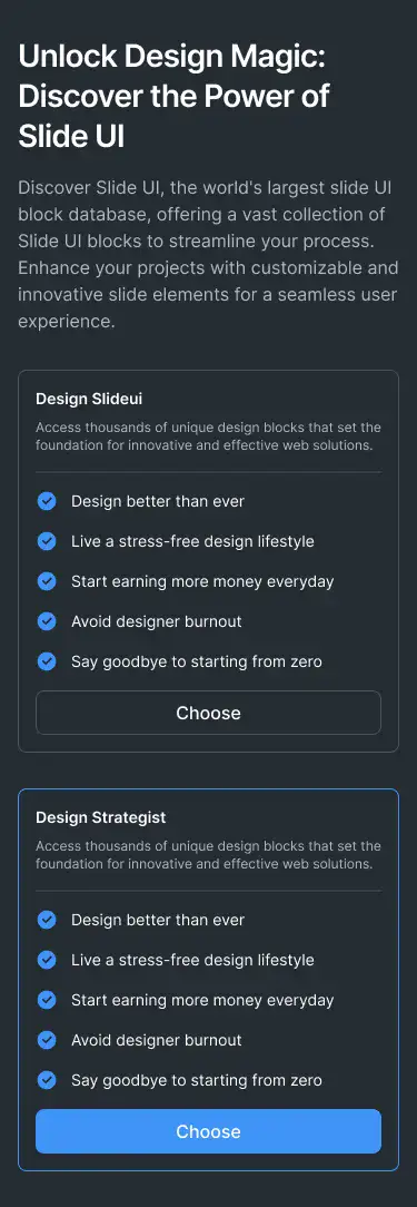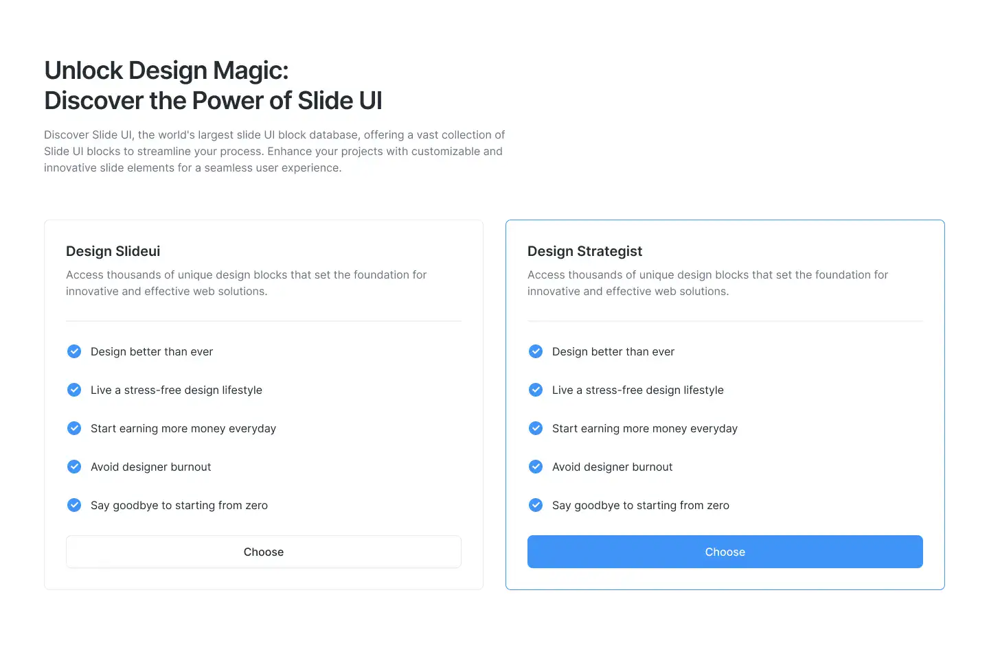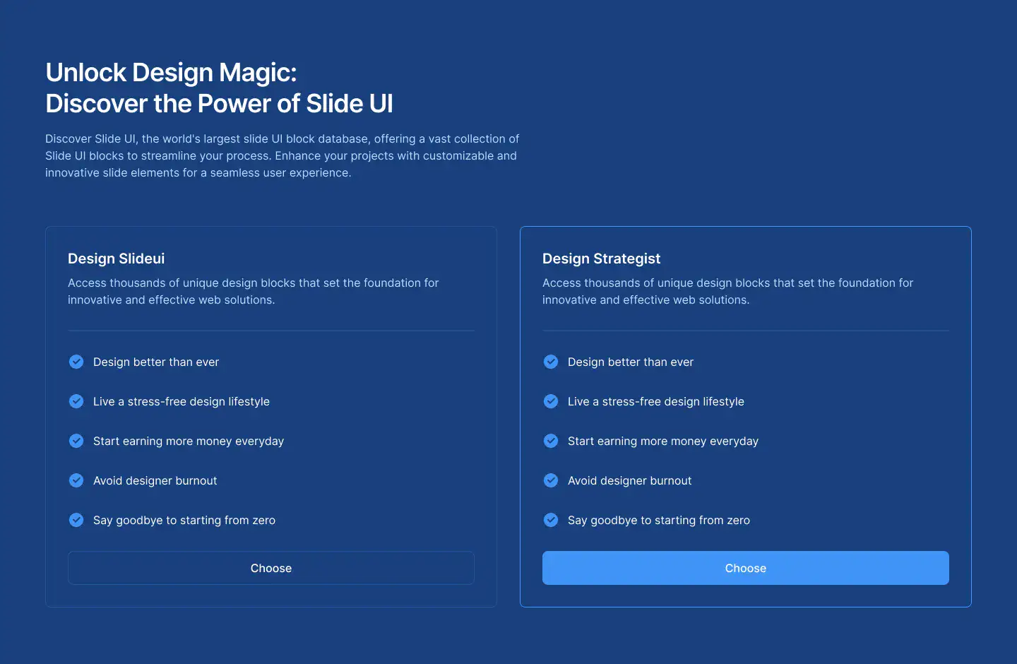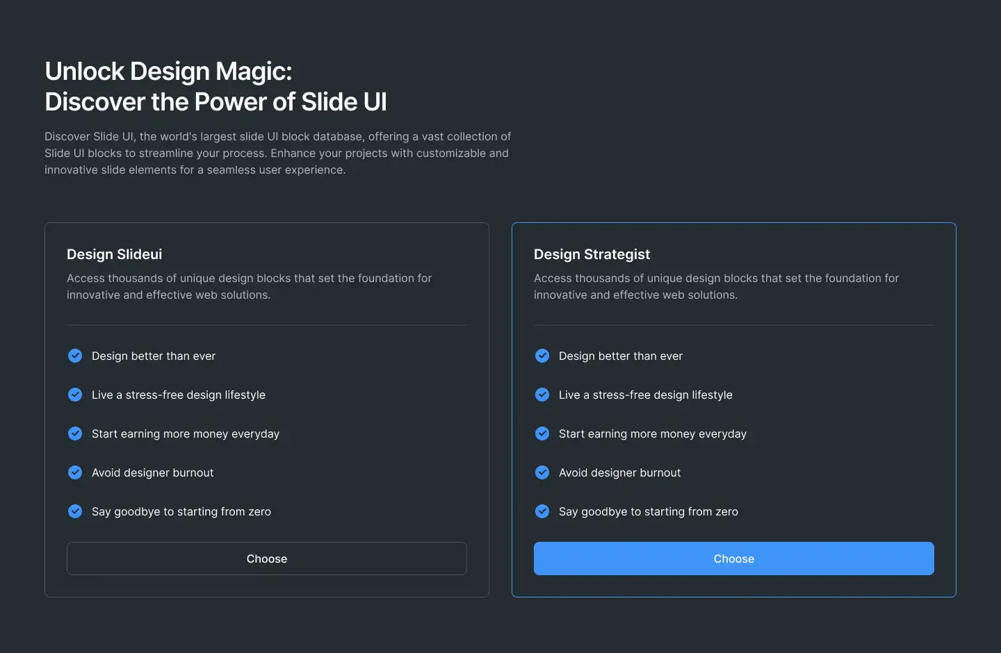 Note:If you prefer SaaS, you can also check out our sister platform app.slideui.com, which offers yearly plans. But if you’re an avid Figma user, the Builder is a must-have — while SaaS can look shiny, nothing beats the speed and control of owning the files directly.