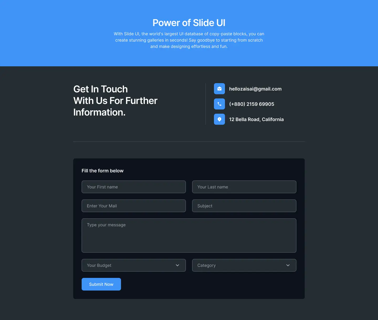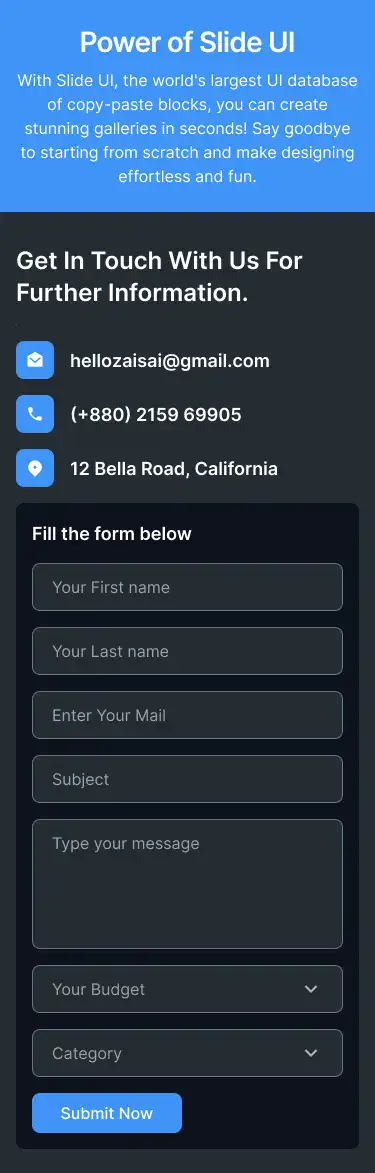 Contact Layout for Figma — clean, themeable and responsive across Desktop, Tablet and Mobile. Includes Light, Dark and Accent modes for fast customisation. Ideal for Ecommerce, Events, Healthcare.