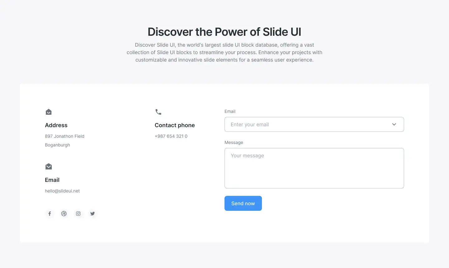Contact Layout for Figma — modern, themeable and responsive across Desktop, Tablet and Mobile. Includes Light, Dark and Accent modes for fast customisation. Ideal for Events, Fitness, Media.