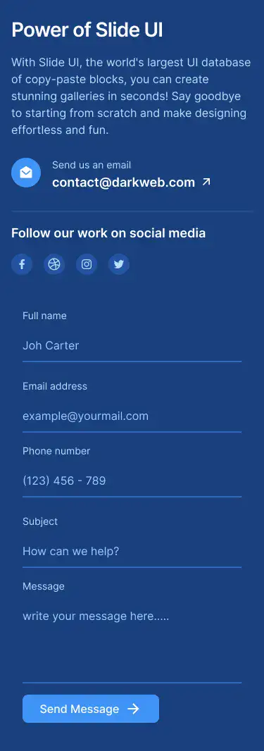 Contact Layout for Figma — modern, themeable and responsive across Desktop, Tablet and Mobile. Includes Light, Dark and Accent modes for fast customisation. Ideal for Hotel, SaaS, Startup.