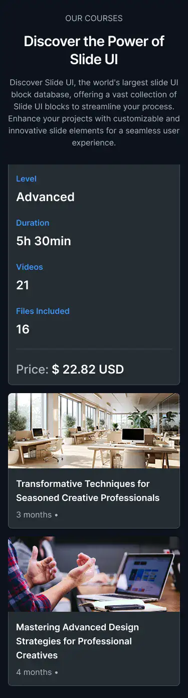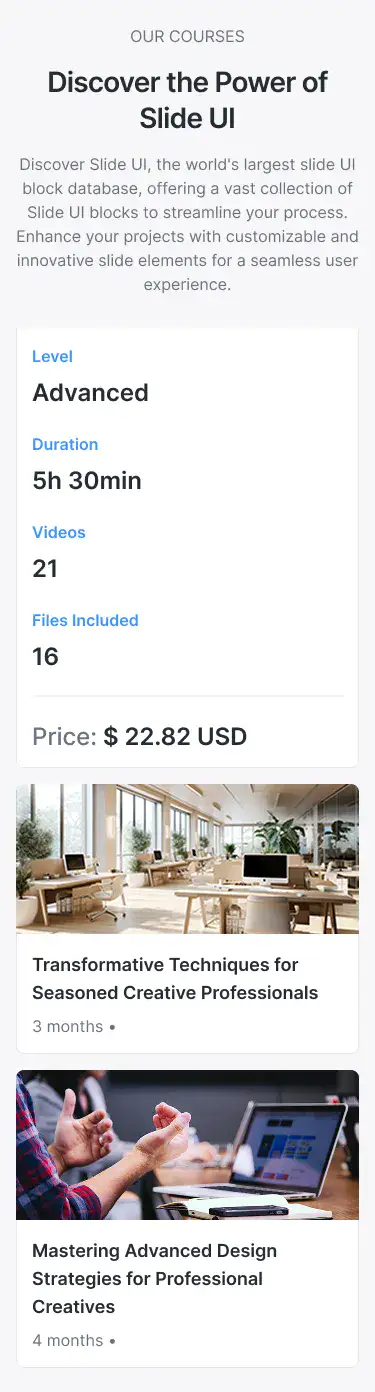 Sell or display digital courses, tutorials, or lessons with clean layouts and structured flow.