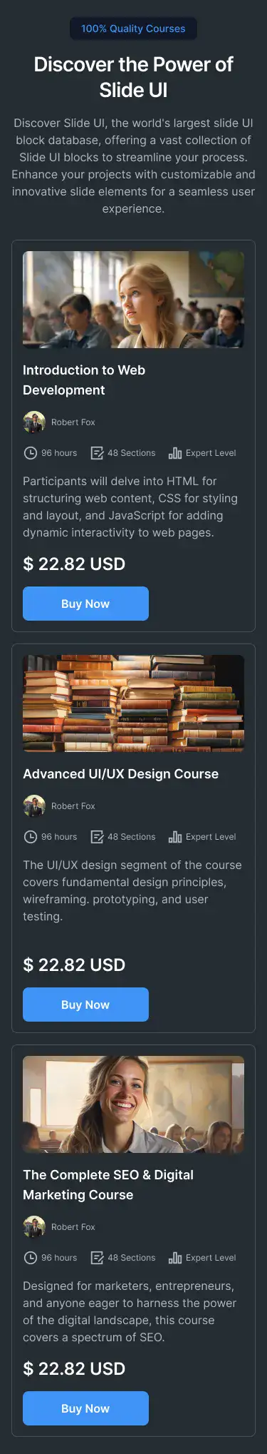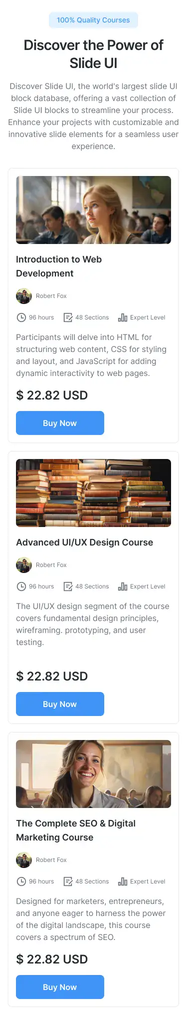Sell or display digital courses, tutorials, or lessons with clean layouts and structured flow.