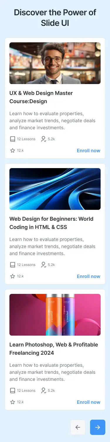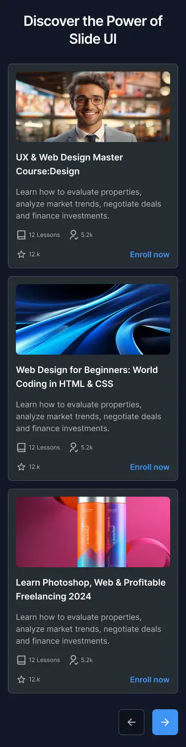 Courses Layout for Figma — clean, themeable and responsive across Desktop, Tablet and Mobile. Includes Light, Dark and Accent modes for fast customisation. Ideal for Automotive, Ecommerce, Events.