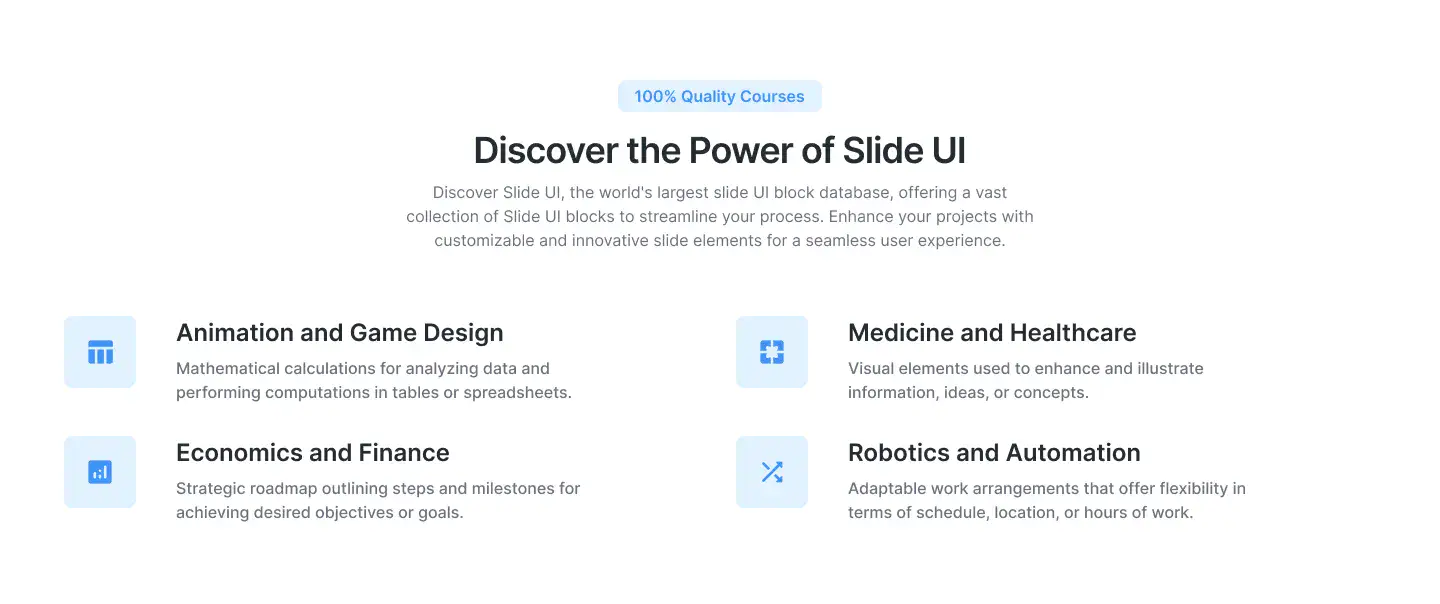 Grid or column-based layouts to highlight your best product features — fast, skimmable, and easy to reuse.