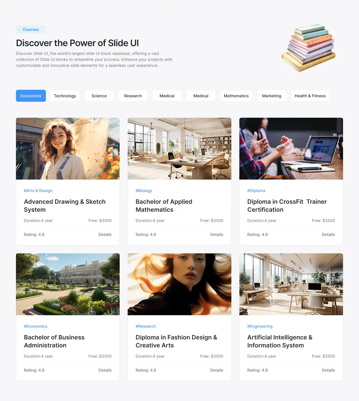 Sell or display digital courses, tutorials, or lessons with clean layouts and structured flow.