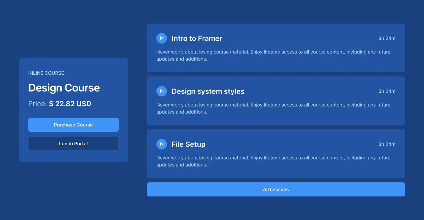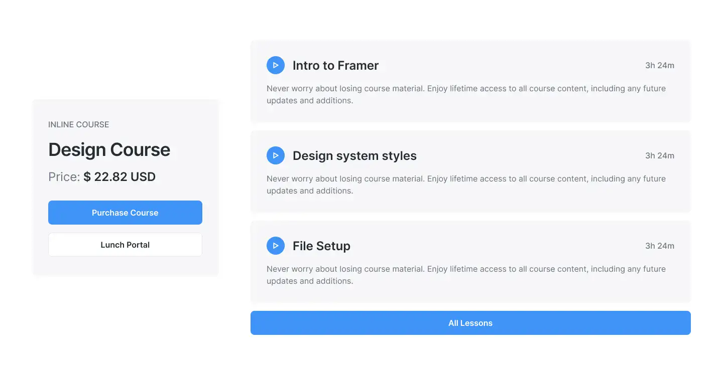 Sell or display digital courses, tutorials, or lessons with clean layouts and structured flow.