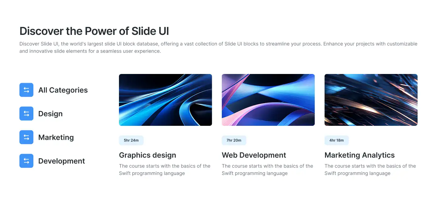 Organise your blog or knowledge base visually with clean, responsive category cards or grids.