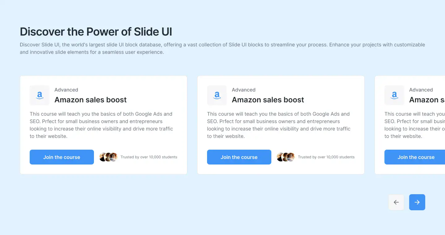 View Hero blocksShowcase processes, features, or onboarding in a clean 3–4 step layout. These are perfect for explaining complex ideas simply.