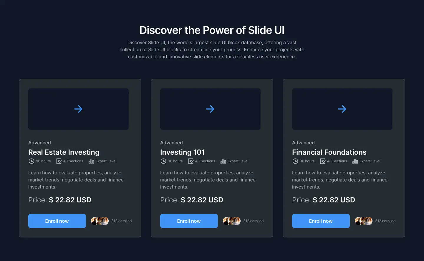 Sell or display digital courses, tutorials, or lessons with clean layouts and structured flow.