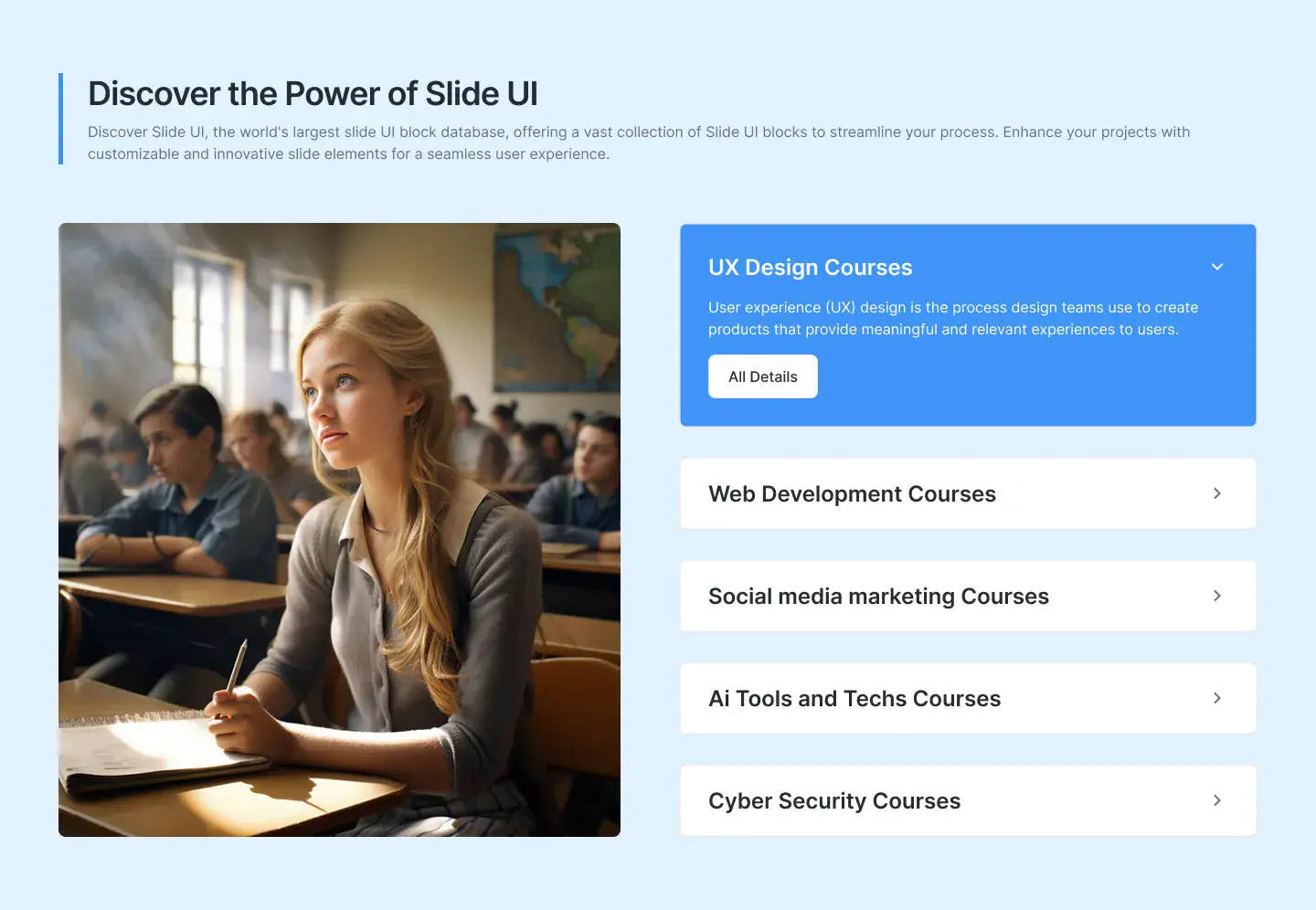 Sell or display digital courses, tutorials, or lessons with clean layouts and structured flow.