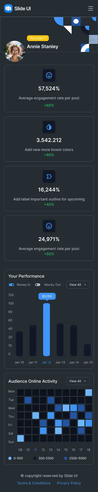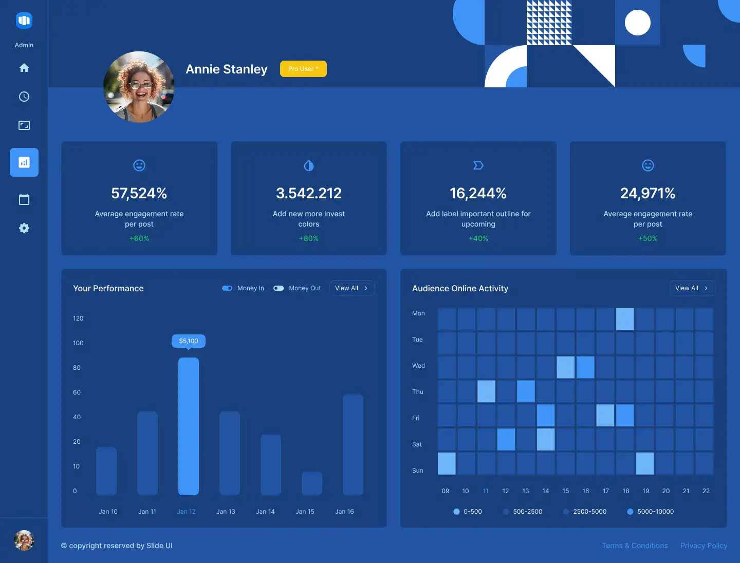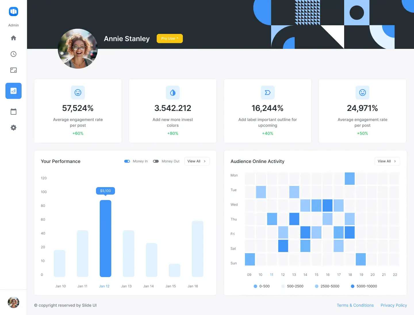 Dashboard Layout for Figma — modern, themeable and responsive across Desktop, Tablet and Mobile. Includes Light, Dark and Accent modes for fast customisation. Ideal for Agency, Education, Insurance.