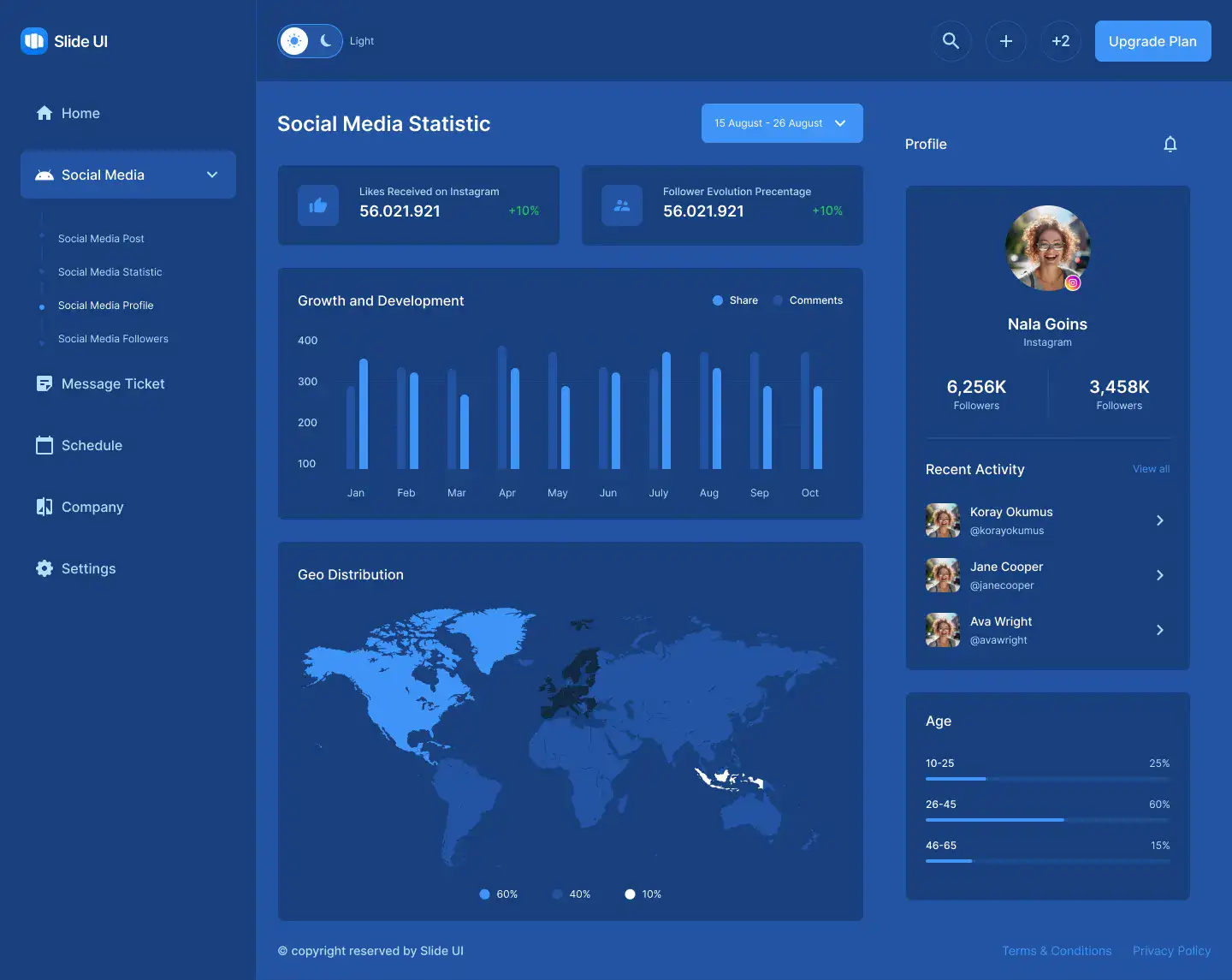 Dashboard Layout for Figma — modern, themeable and responsive across Desktop, Tablet and Mobile. Includes Light, Dark and Accent modes for fast customisation. Ideal for Ecommerce, Fintech, Hotel.