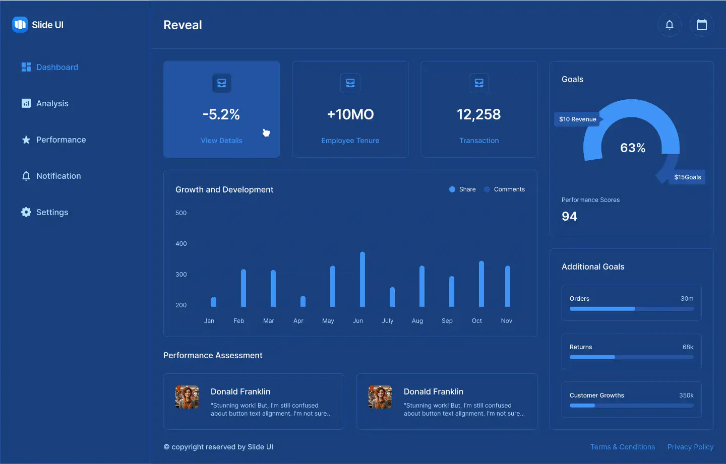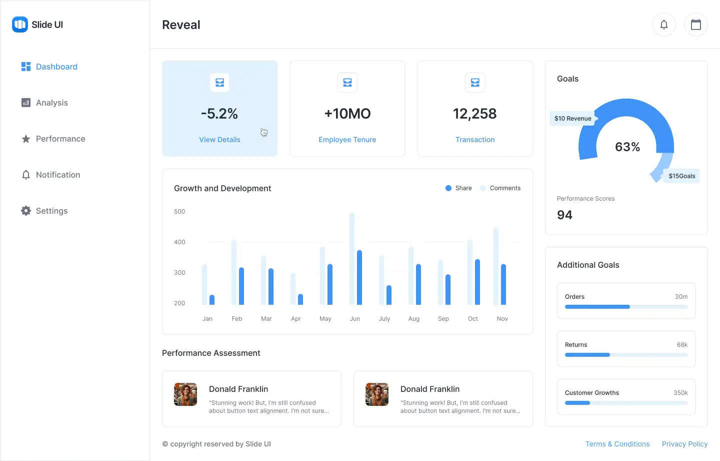 Performance, analytics, revenue, and admin dashboards designed for clarity and real SaaS products.