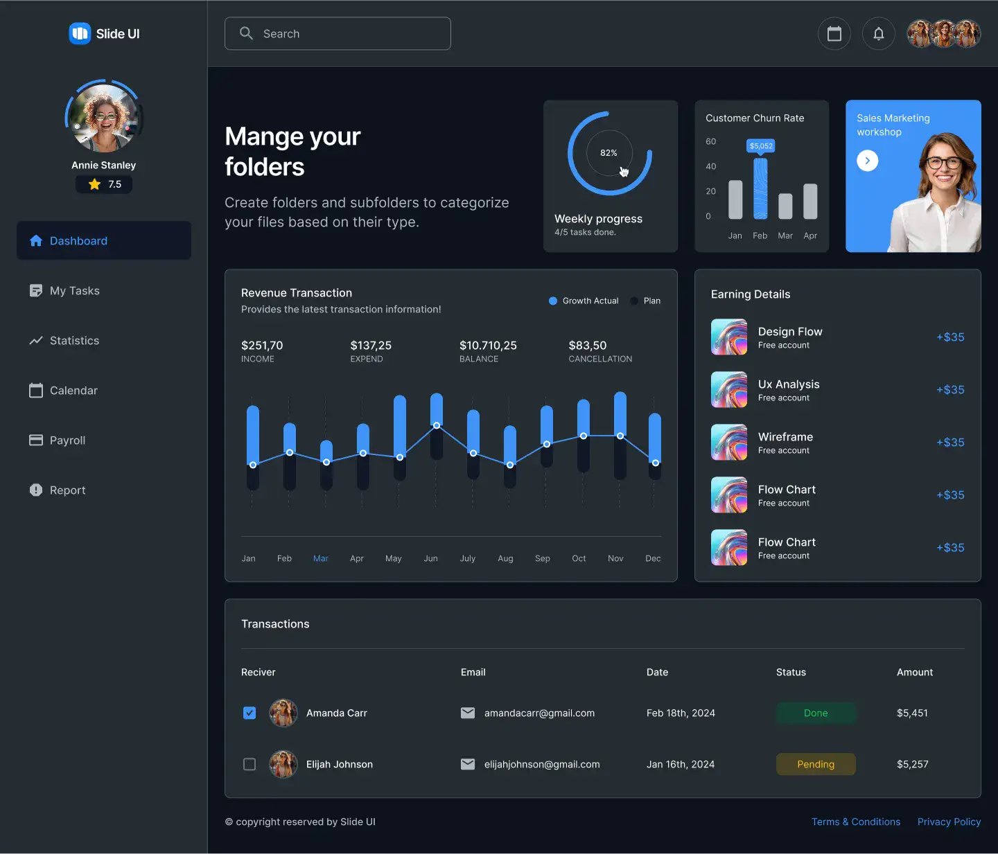 Performance, analytics, revenue, and admin dashboards designed for clarity and real SaaS products.