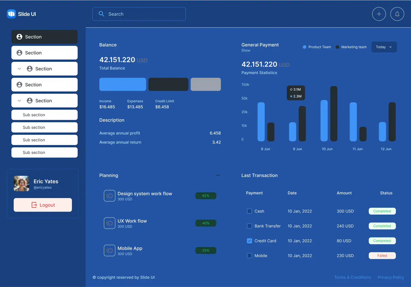 Dashboard Layout for Figma — swiss, themeable and responsive across Desktop, Tablet and Mobile. Includes Light, Dark and Accent modes for fast customisation. Ideal for Crypto, Events, Law.