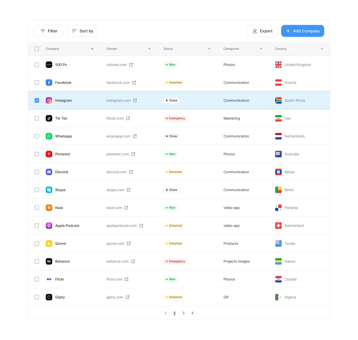 Responsive data table blocks — sortable, readable, and styled for dashboards or admin use.