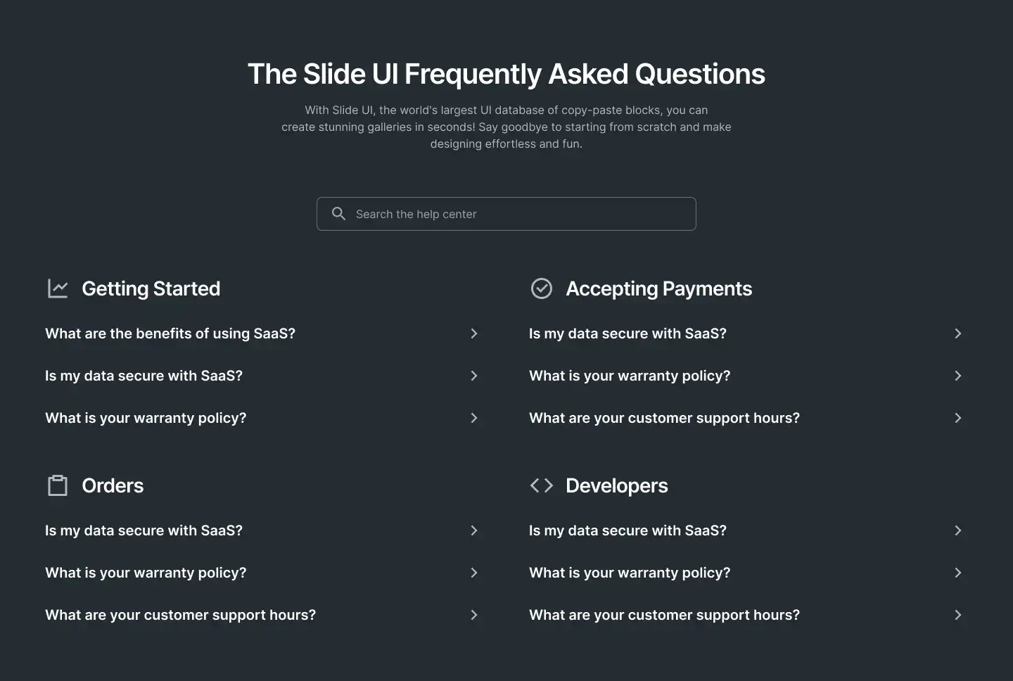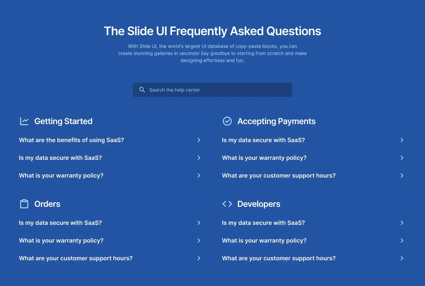 Organise your blog or knowledge base visually with clean, responsive category cards or grids.