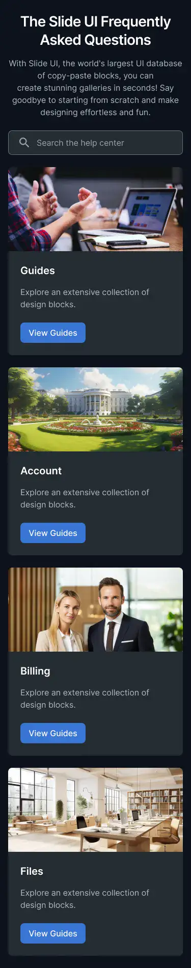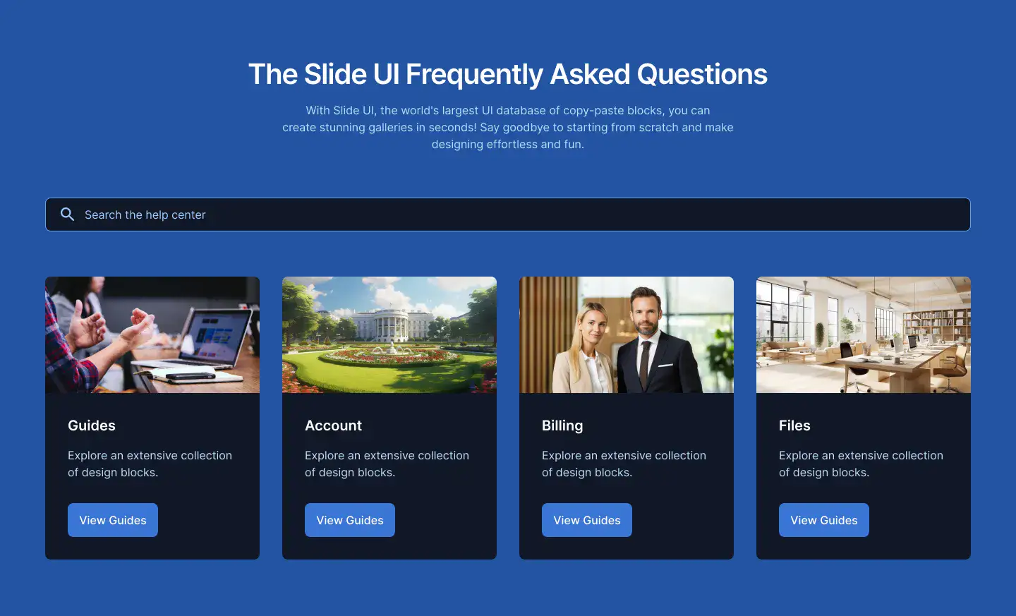 Organise your blog or knowledge base visually with clean, responsive category cards or grids.