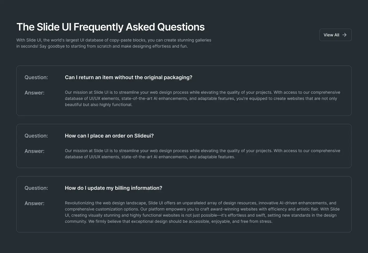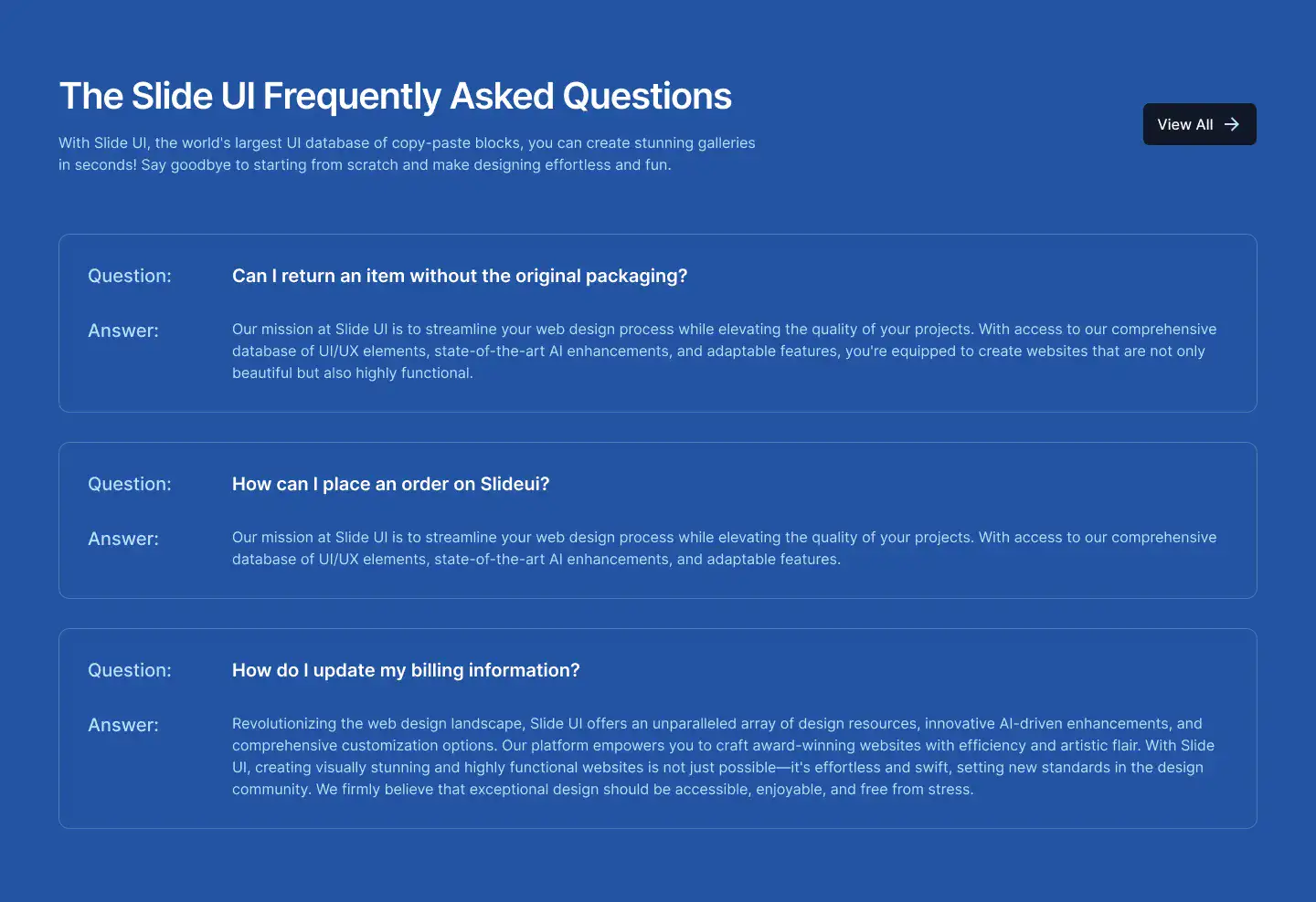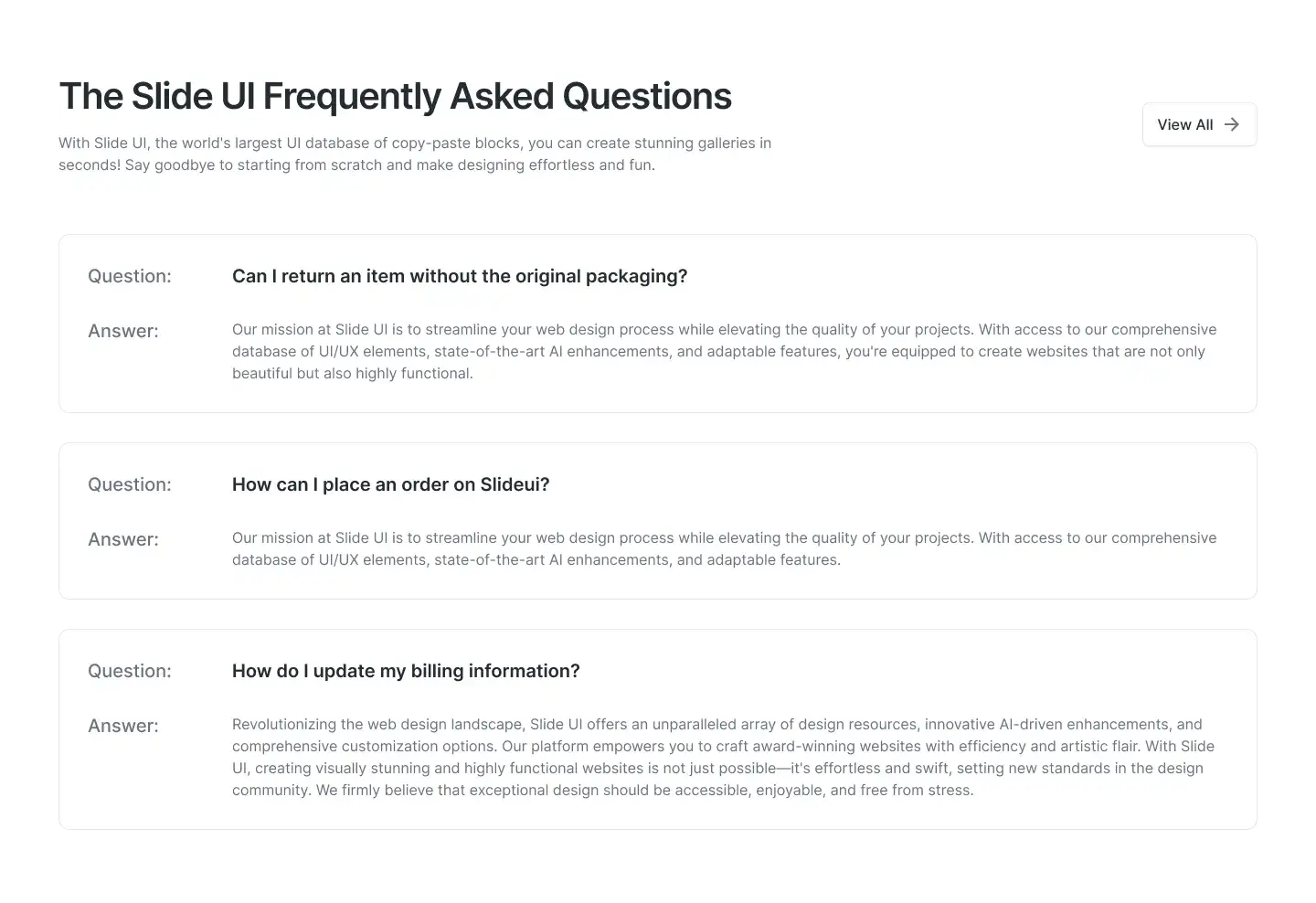 View Testimonial blocksTechnical details, product highlights, feature breakdowns — structured for clarity and mobile responsiveness.