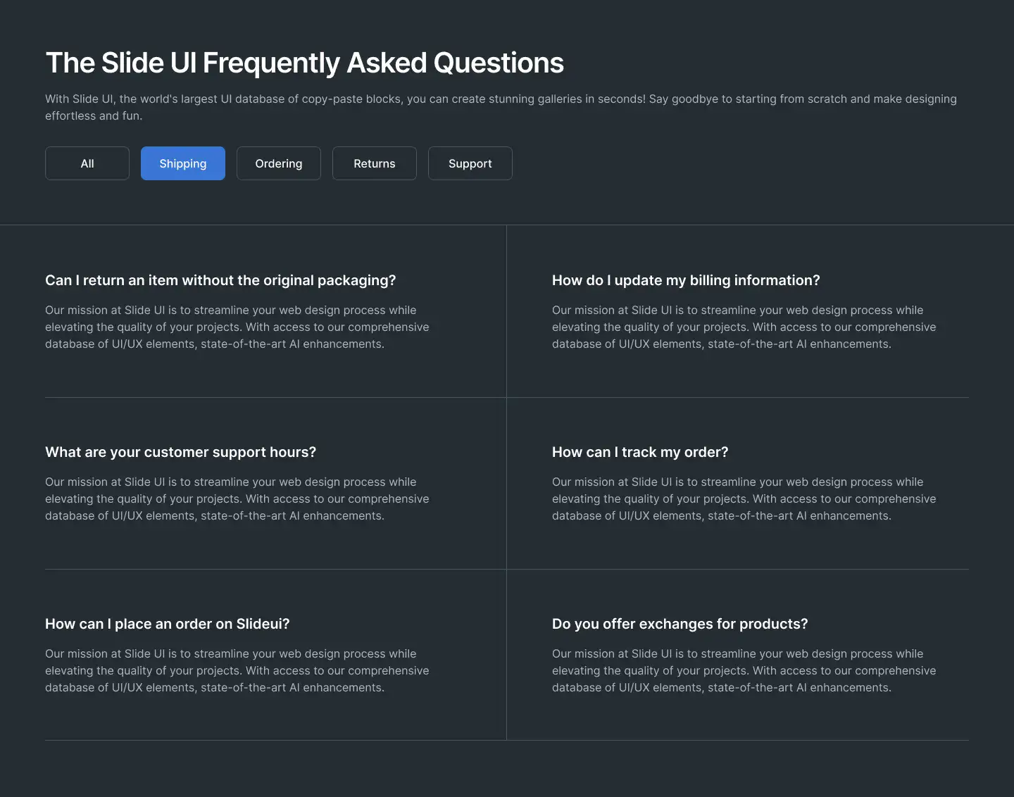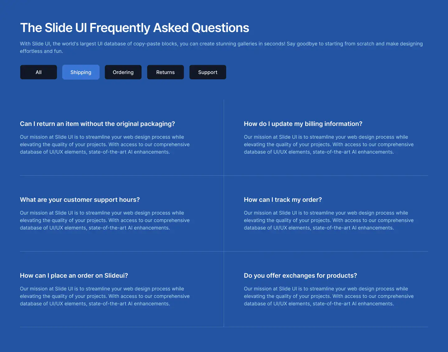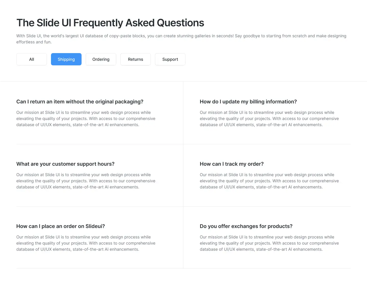 Grid or column-based layouts to highlight your best product features — fast, skimmable, and easy to reuse.
