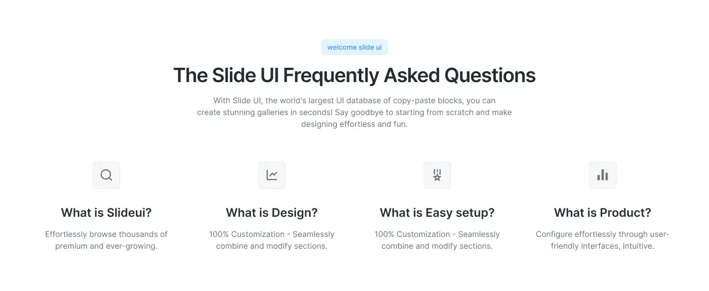 Grid or column-based layouts to highlight your best product features — fast, skimmable, and easy to reuse.
