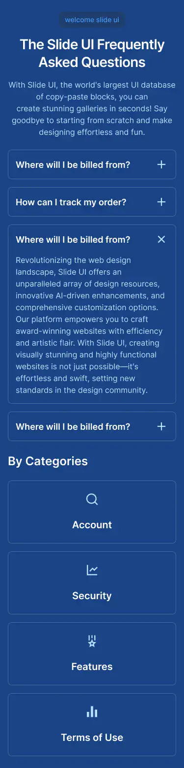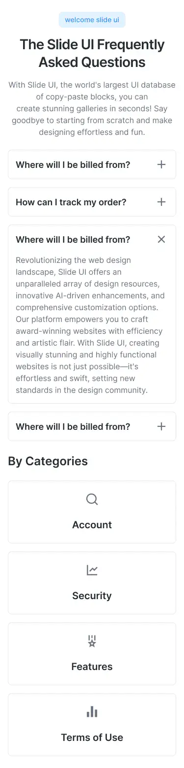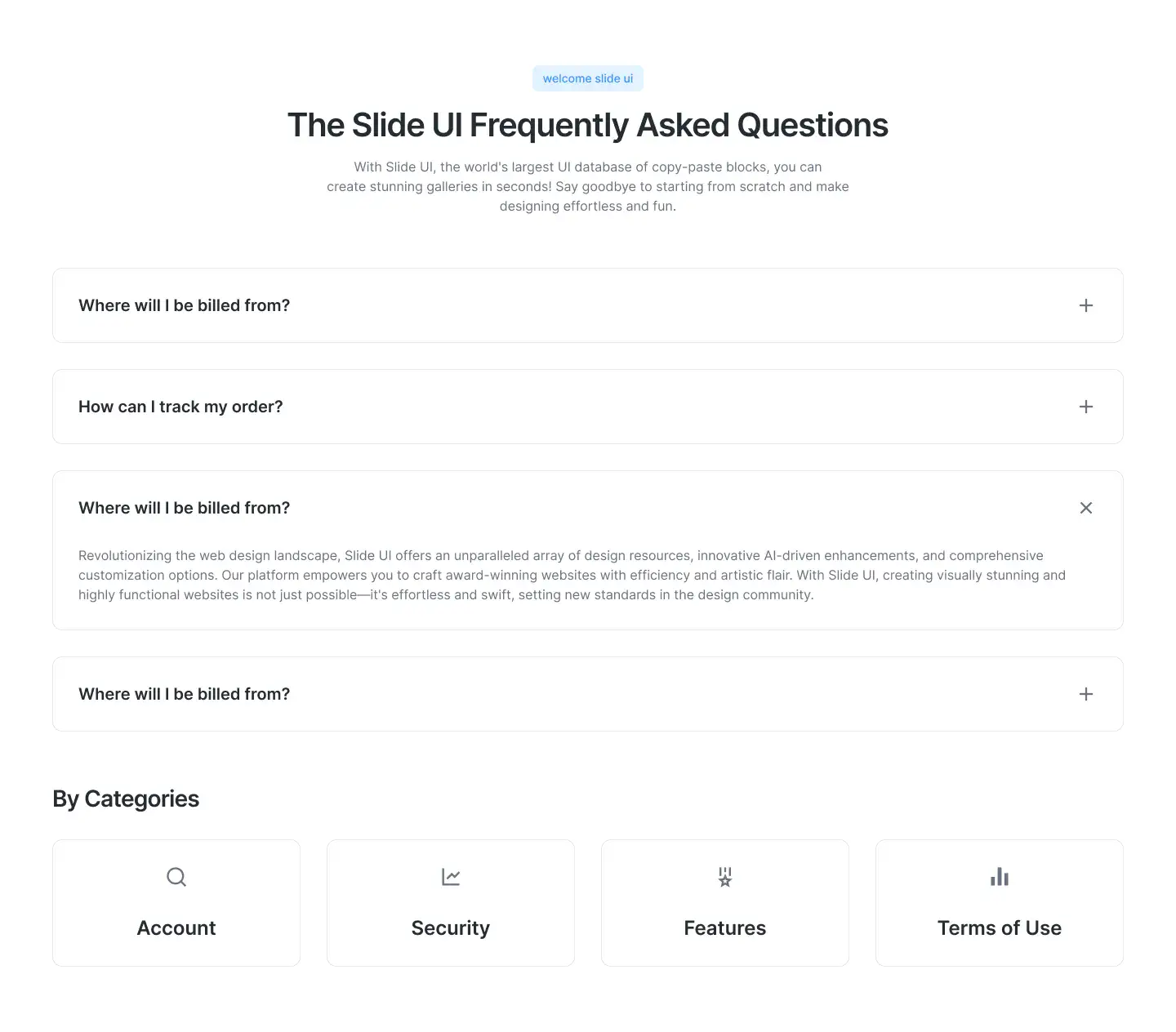 Organise your blog or knowledge base visually with clean, responsive category cards or grids.