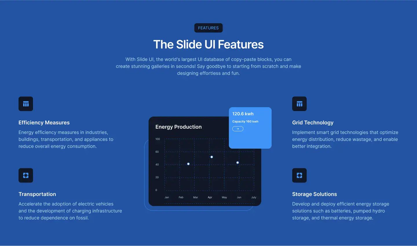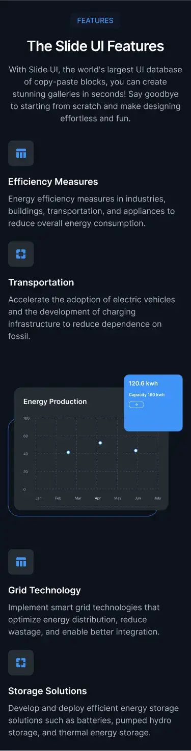 Grid or column-based layouts to highlight your best product features — fast, skimmable, and easy to reuse.