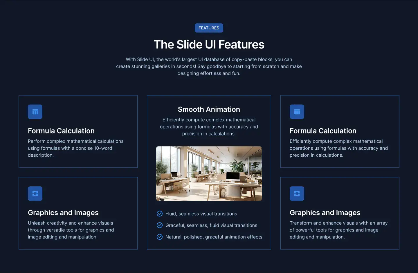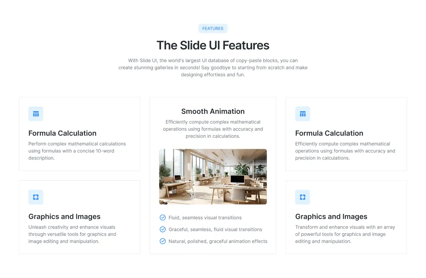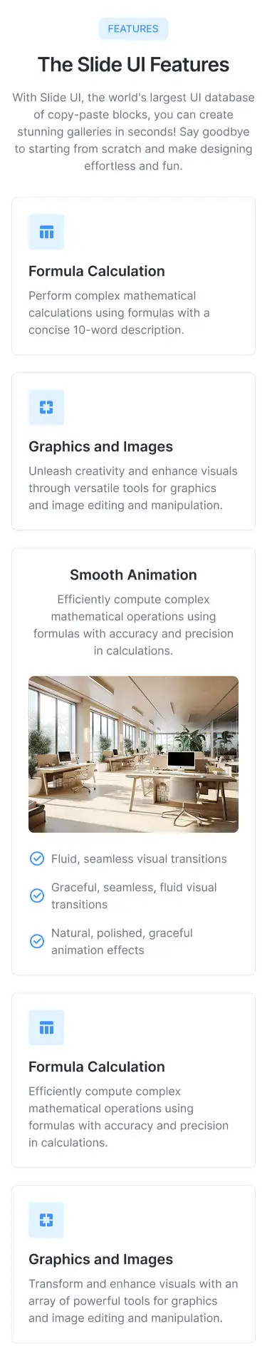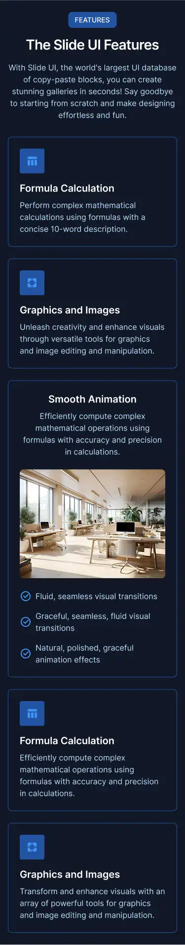 Grid or column-based layouts to highlight your best product features — fast, skimmable, and easy to reuse.