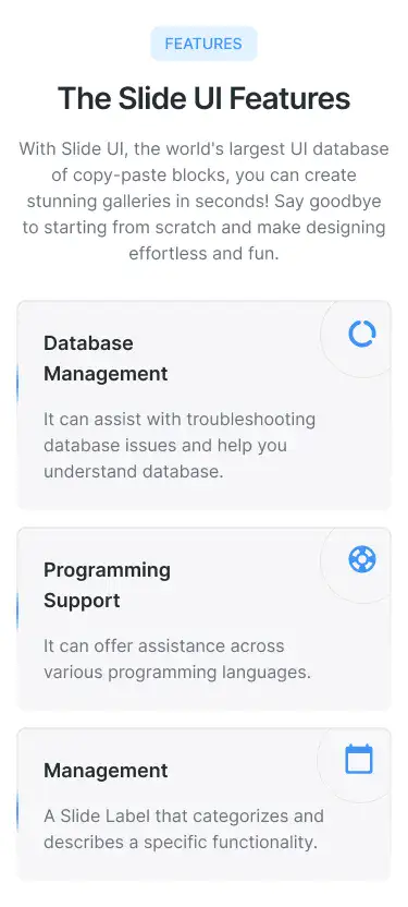 Grid or column-based layouts to highlight your best product features — fast, skimmable, and easy to reuse.