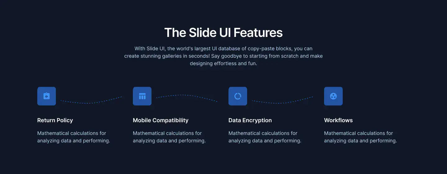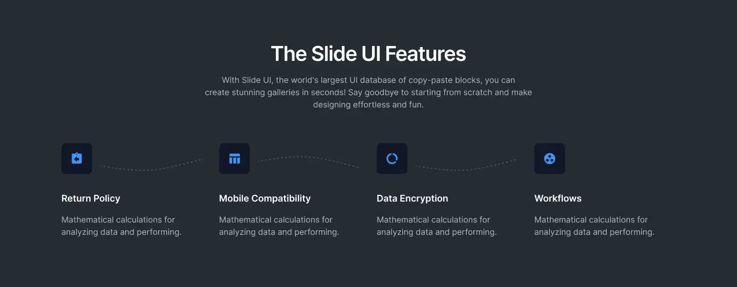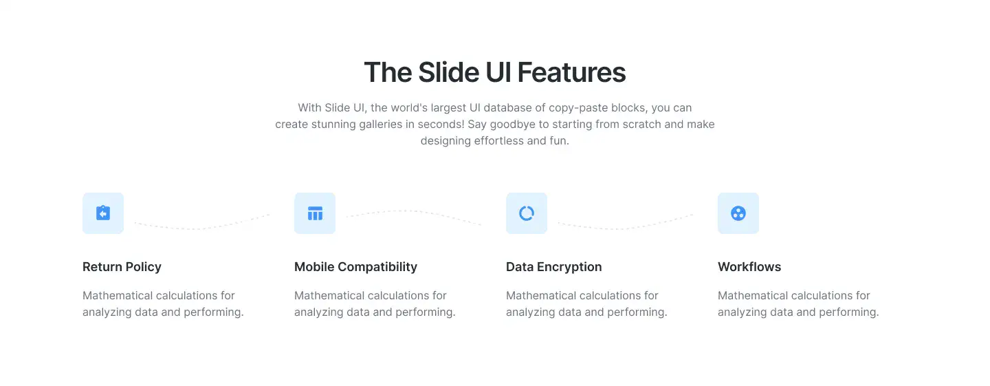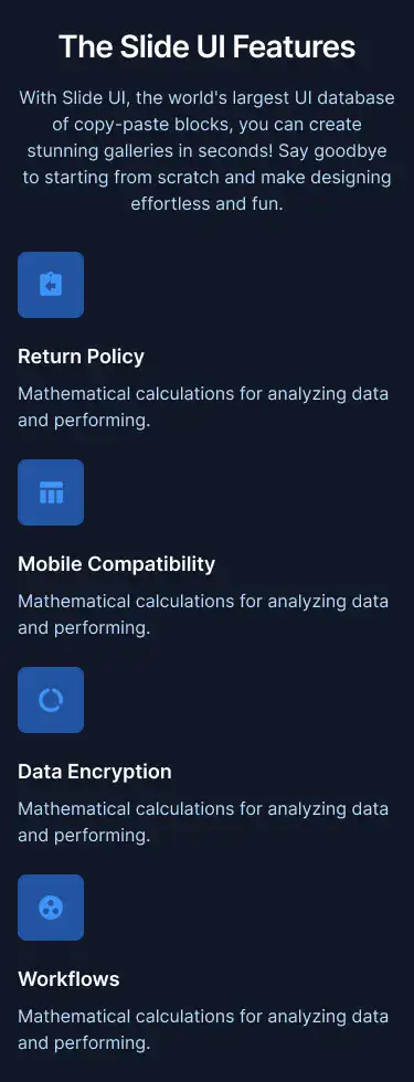 Grid or column-based layouts to highlight your best product features — fast, skimmable, and easy to reuse.